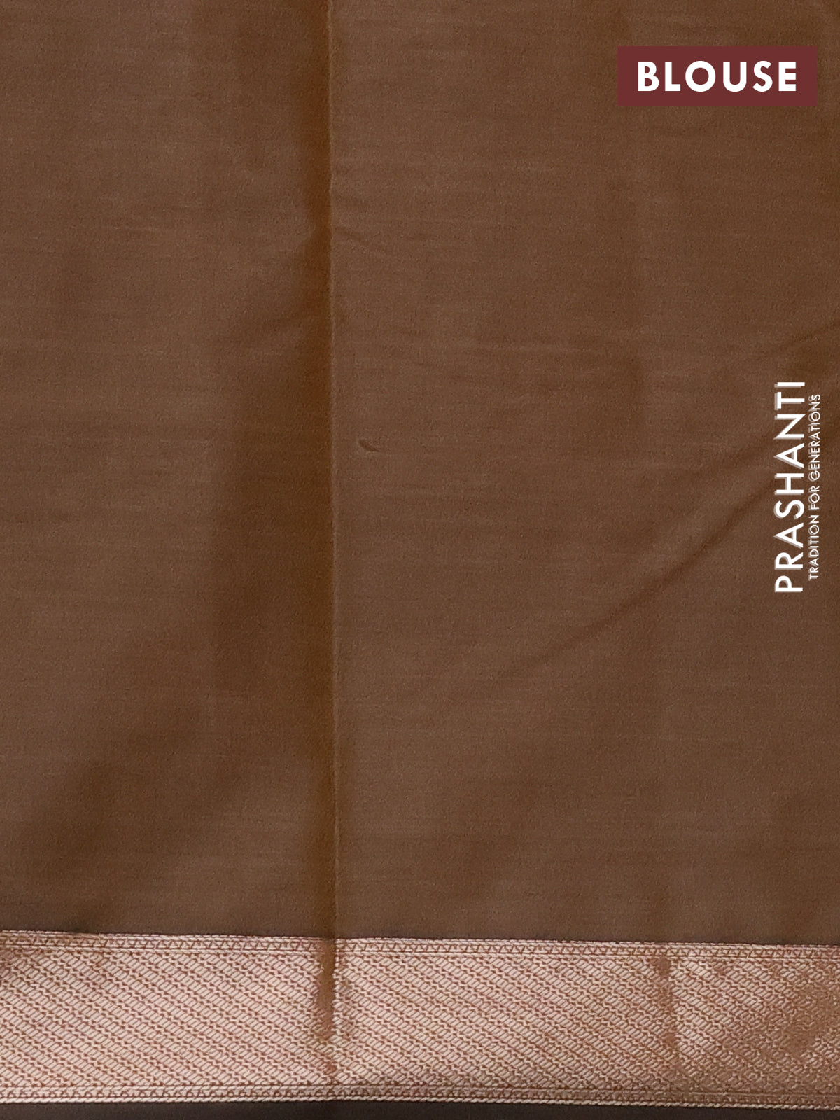 Bangalori semi silk saree dark sandal and brown with allover elephant ikat butta weaves and zari woven border