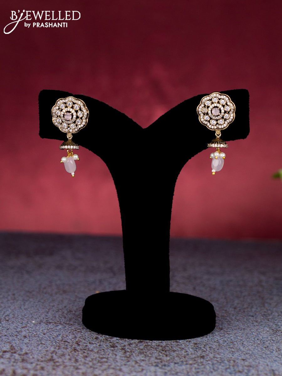 Beaded baby pink necklace with cz stones and pearl & beads hangings in victorian finish