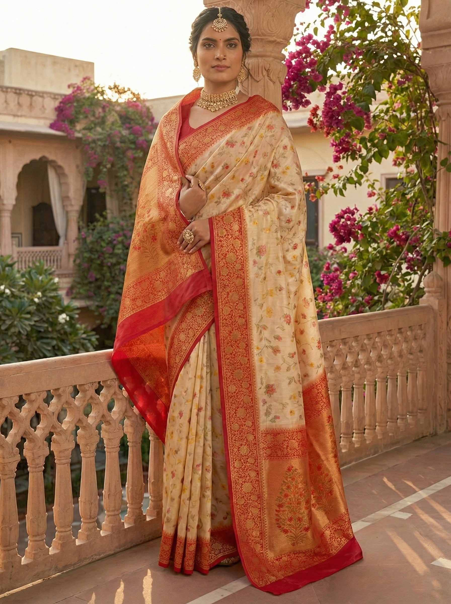 Elevate your ethnic wardrobe with this exquisite beige silk saree, featuring intricate digital prints that blend traditional artistry with contemporary design. Crafted from premium silk, this drape offers a luxurious feel and graceful movement, perfect for festive occasions, weddings, or refined everyday elegance. The sophisticated beige tone complements all skin tones, while the detailed digital patterns add visual interest without overwhelming the classic aesthetic. Versatile and timeless, this saree is an investment piece that transcends seasonal trends.