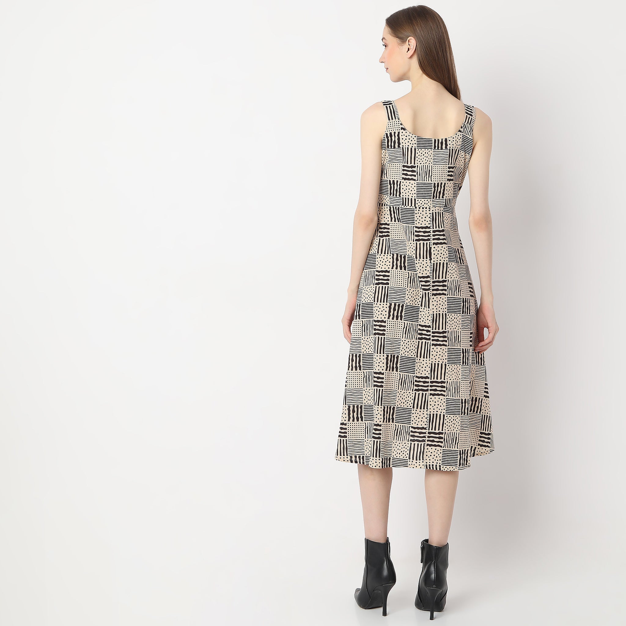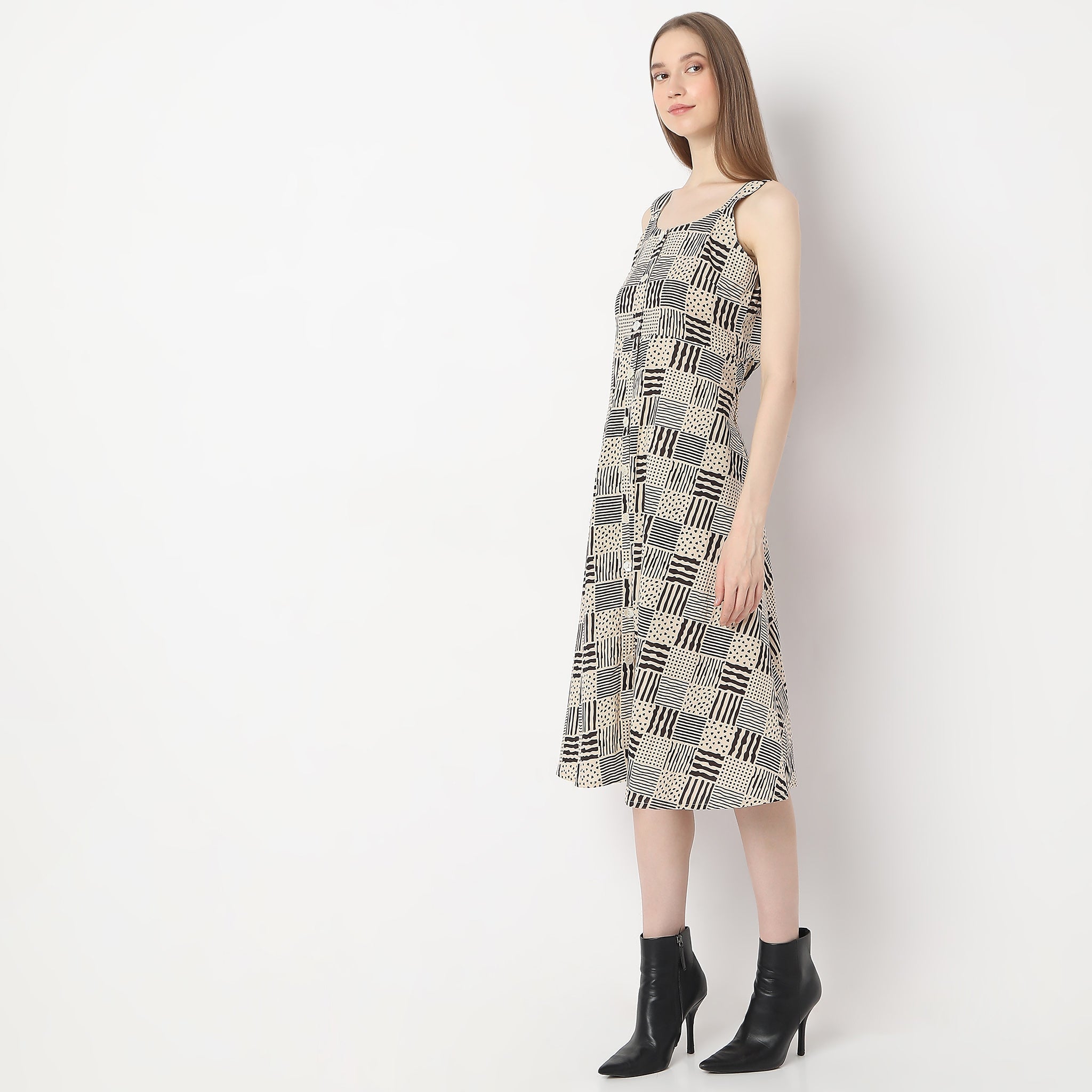 Below Knee Shoulder Straps Sleeve Striped Dress