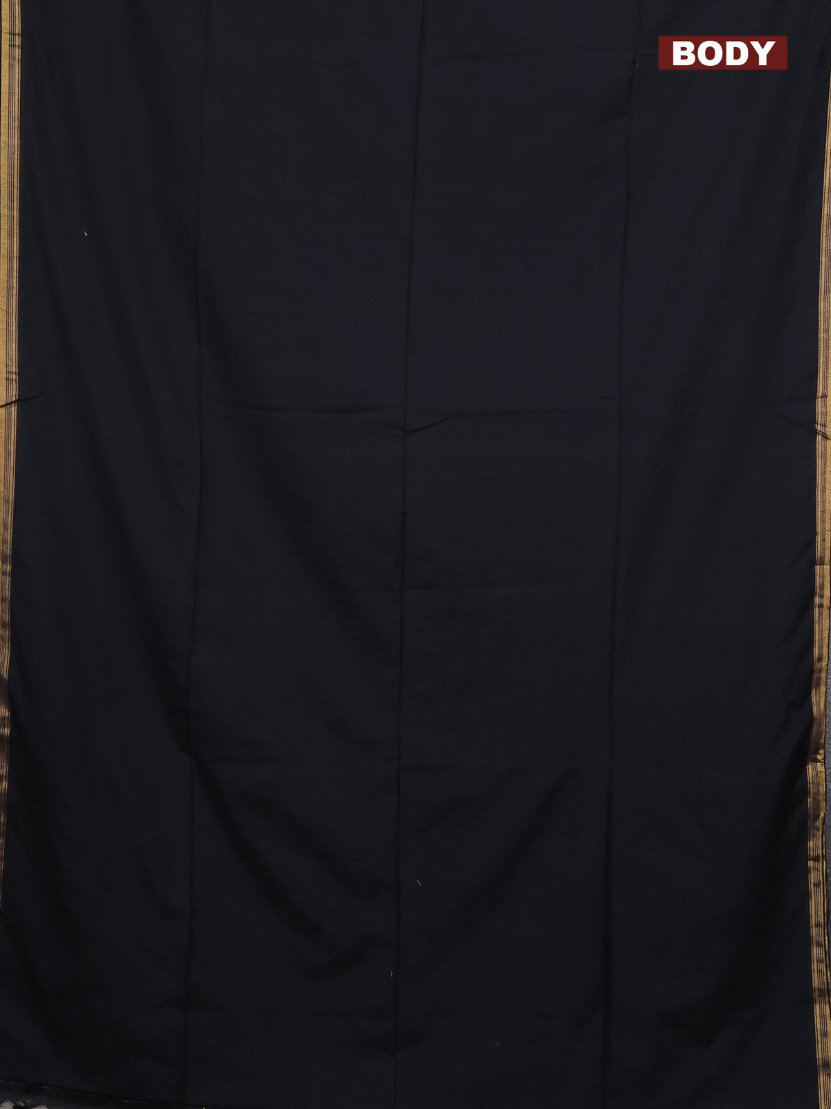 Bengal soft cotton saree black and green with plain body and zari woven border