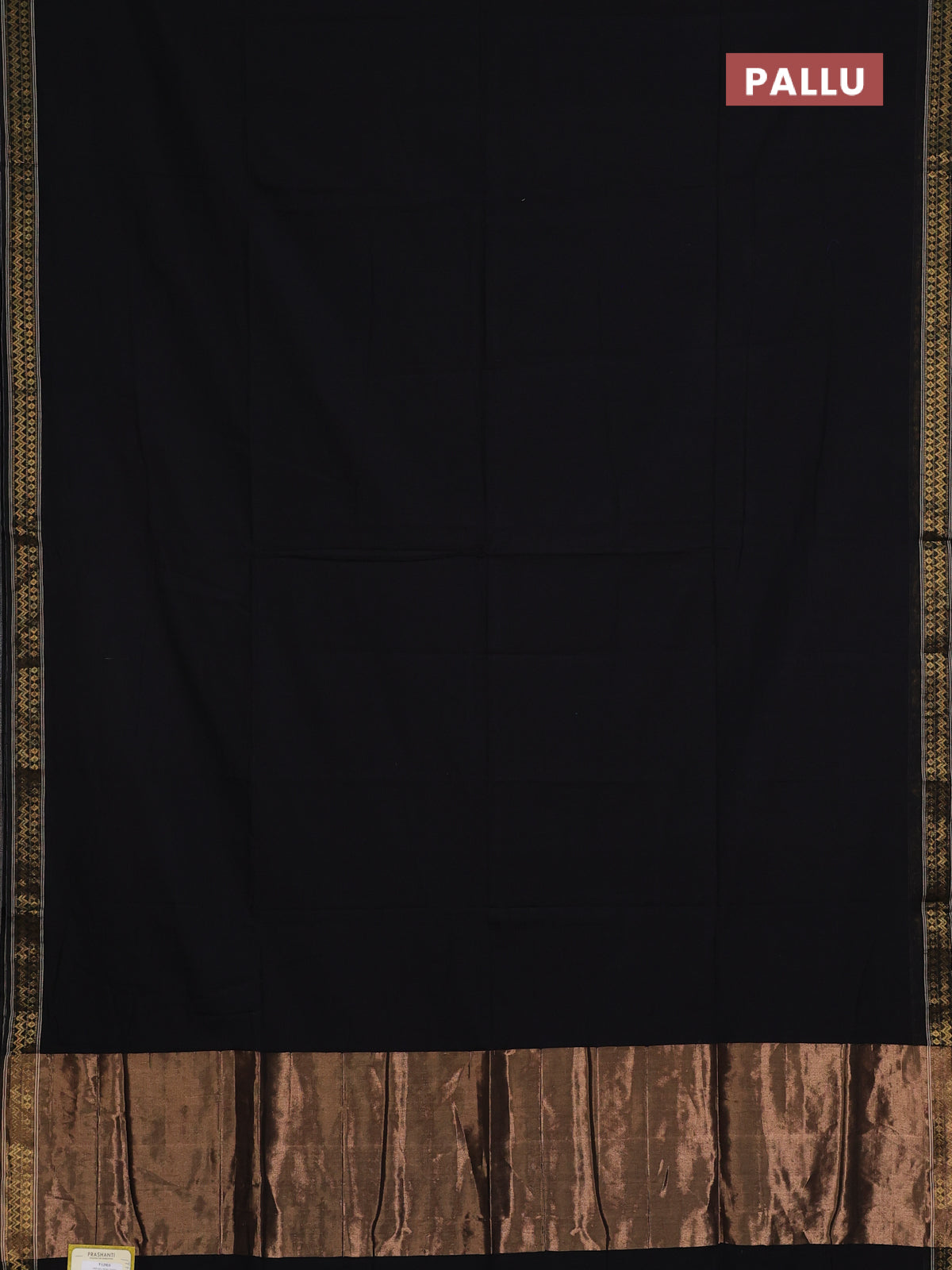 Bengal soft cotton saree black and violet with plain body and zari woven border