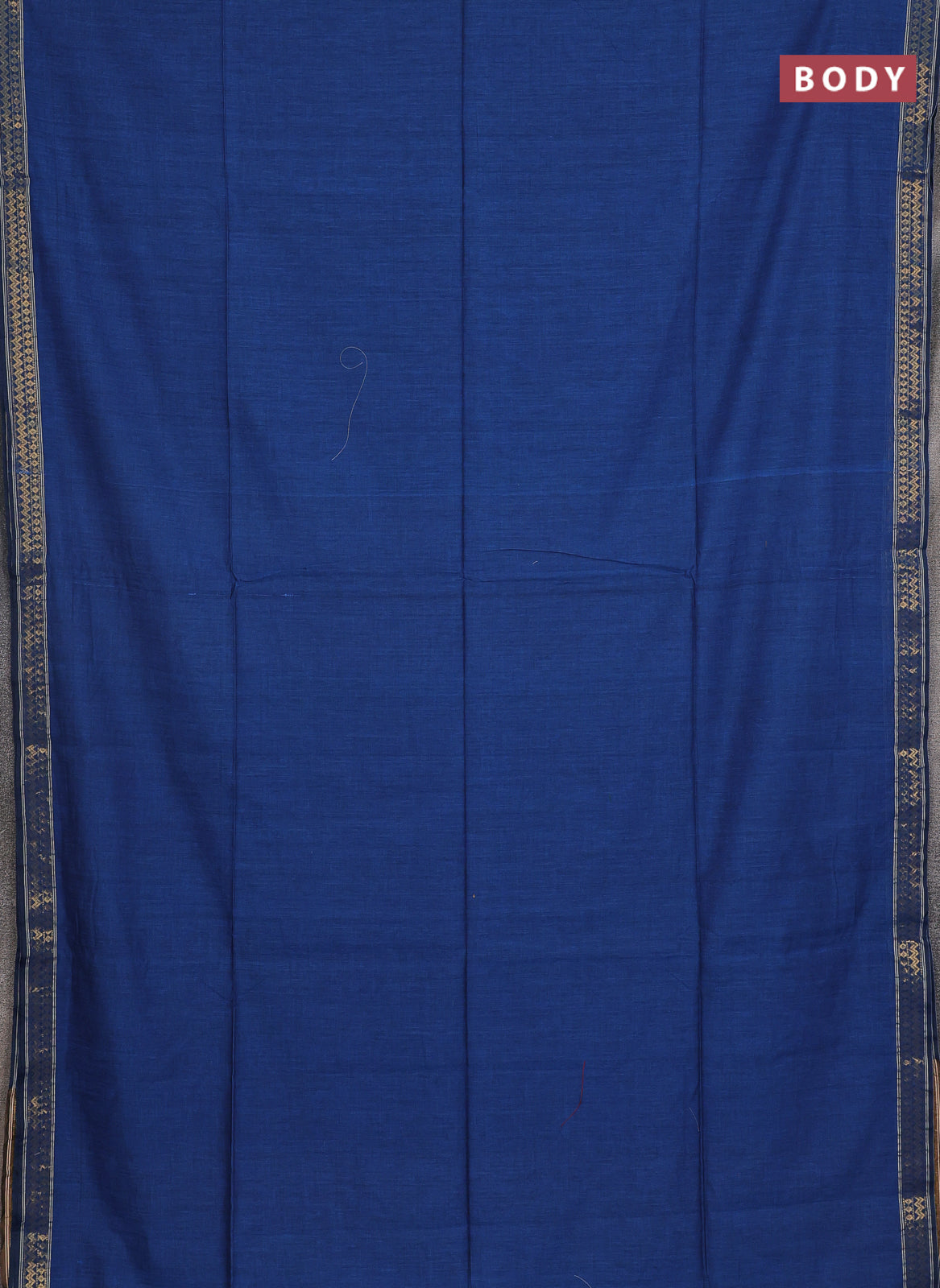 Bengal soft cotton saree blue and red with plain body and zari woven border