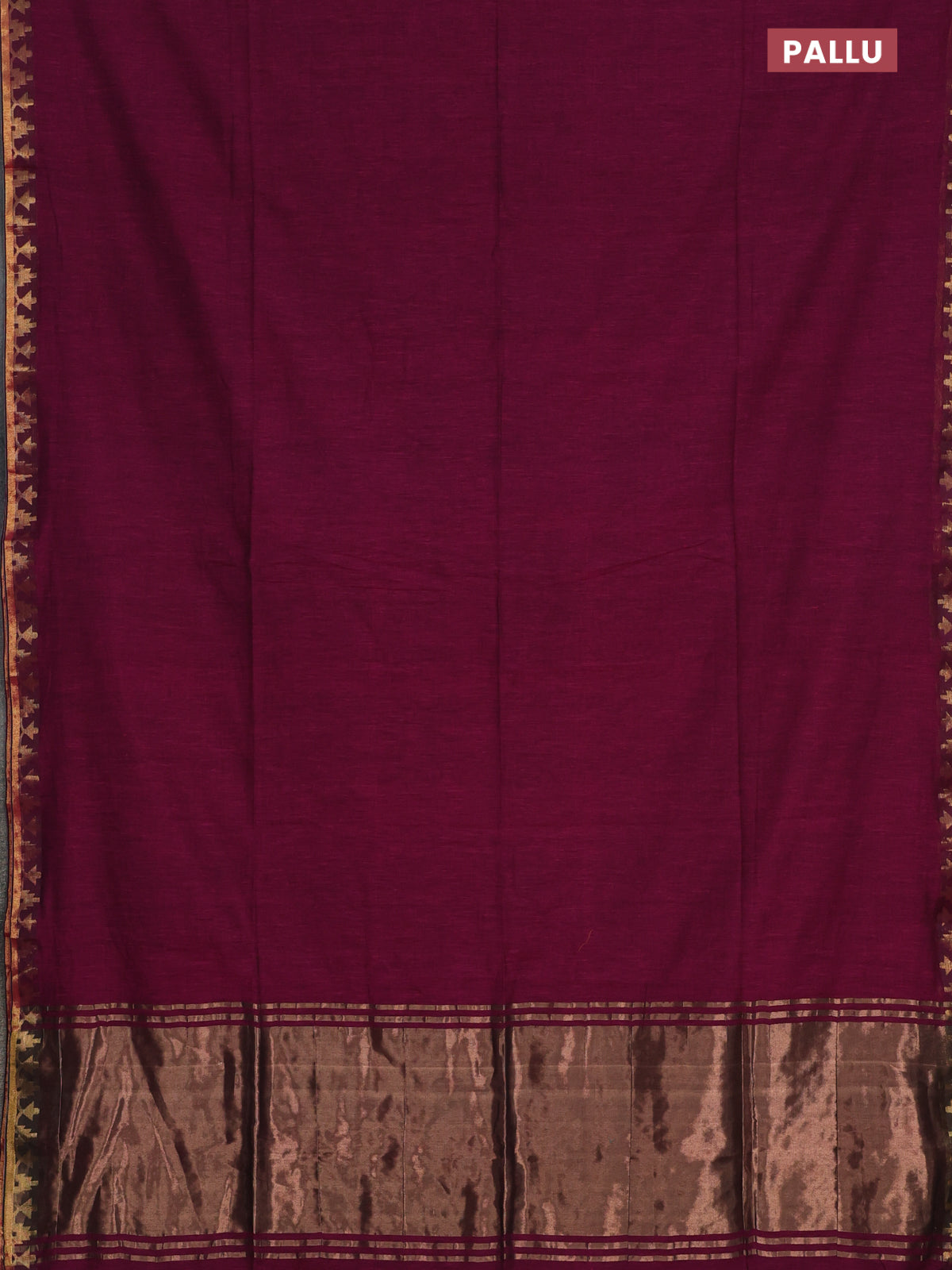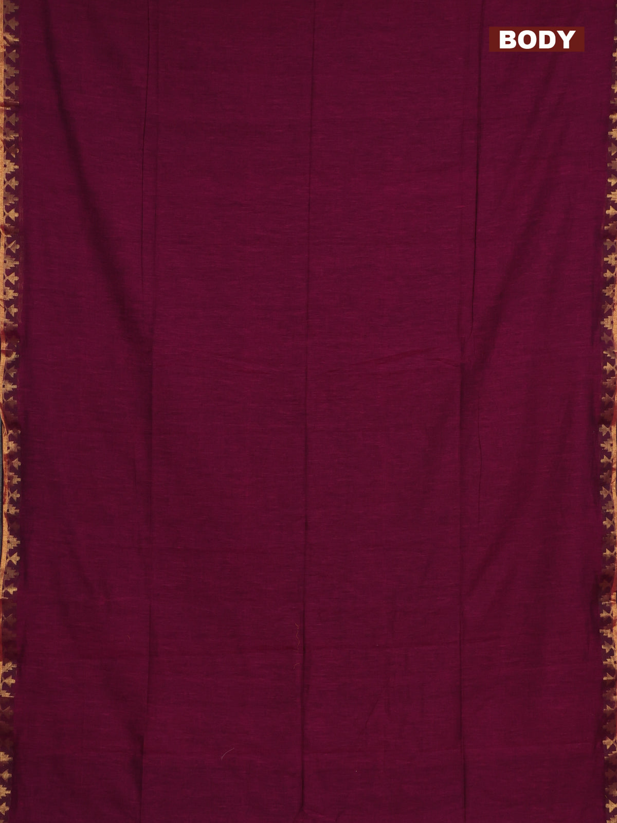 Bengal soft cotton saree dark magenta pink and violet with plain body and zari woven border