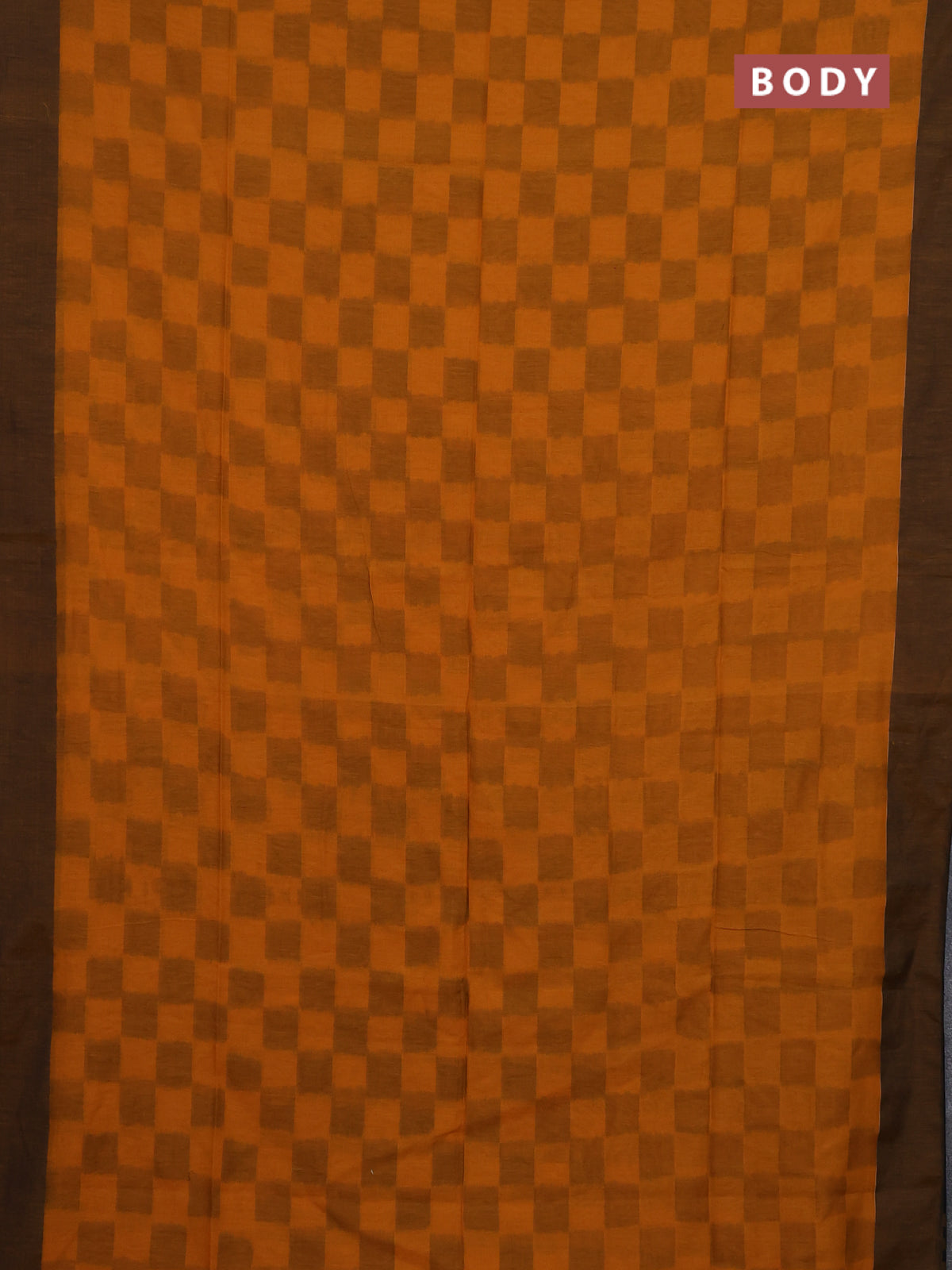 Bengal soft cotton saree dark mustard and black with allover weaves and simple border