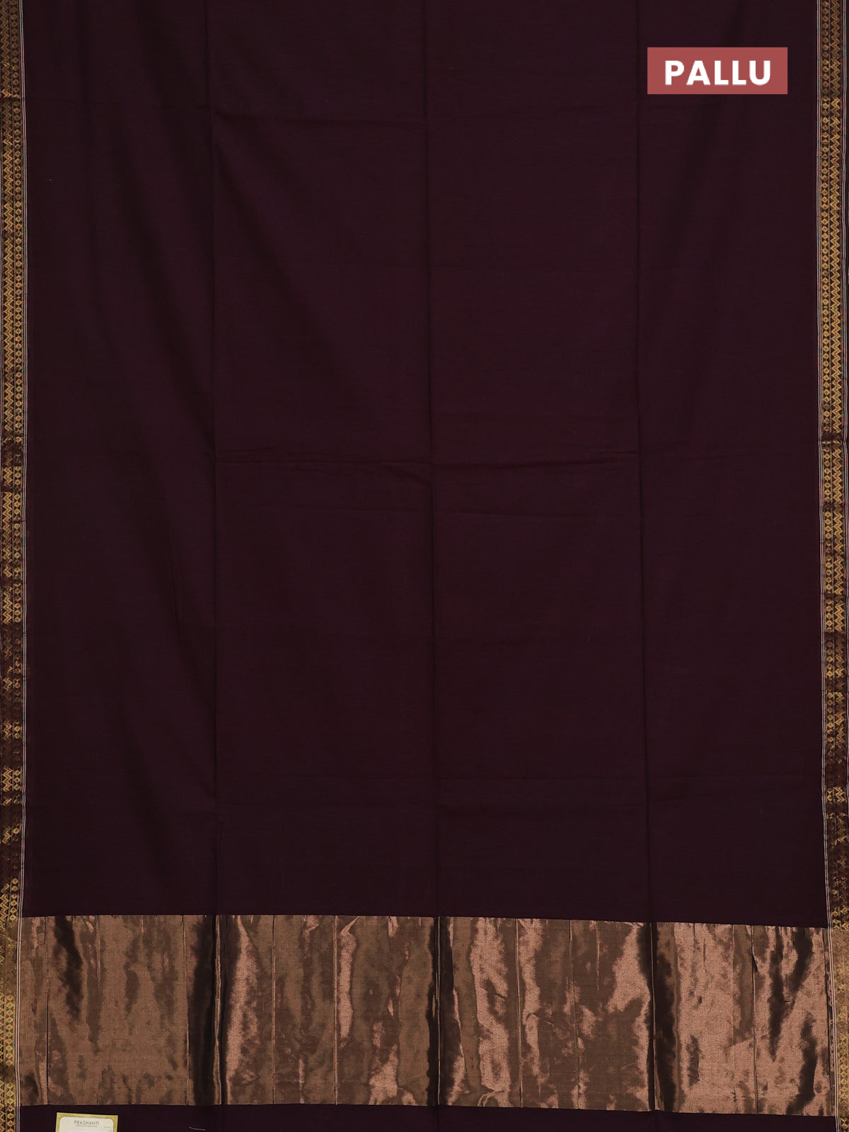 Bengal soft cotton saree deep wine shade and light green with plain body and zari woven border