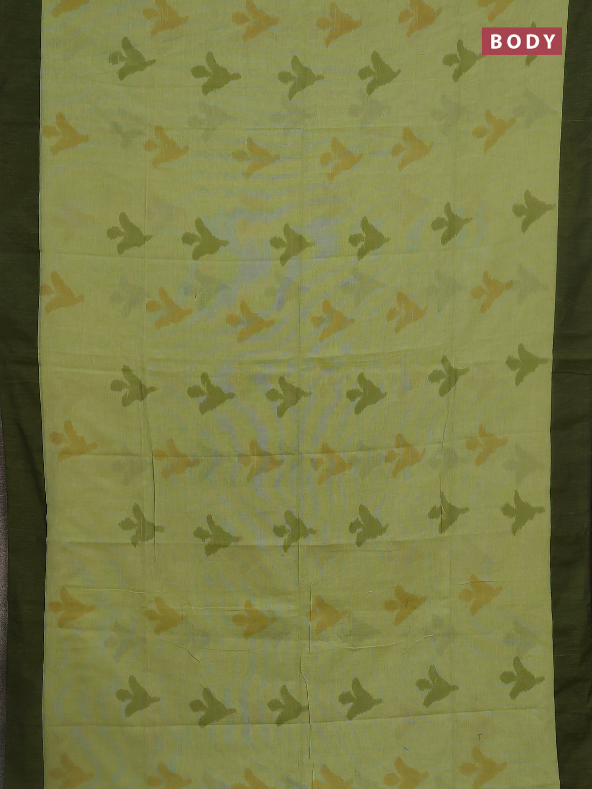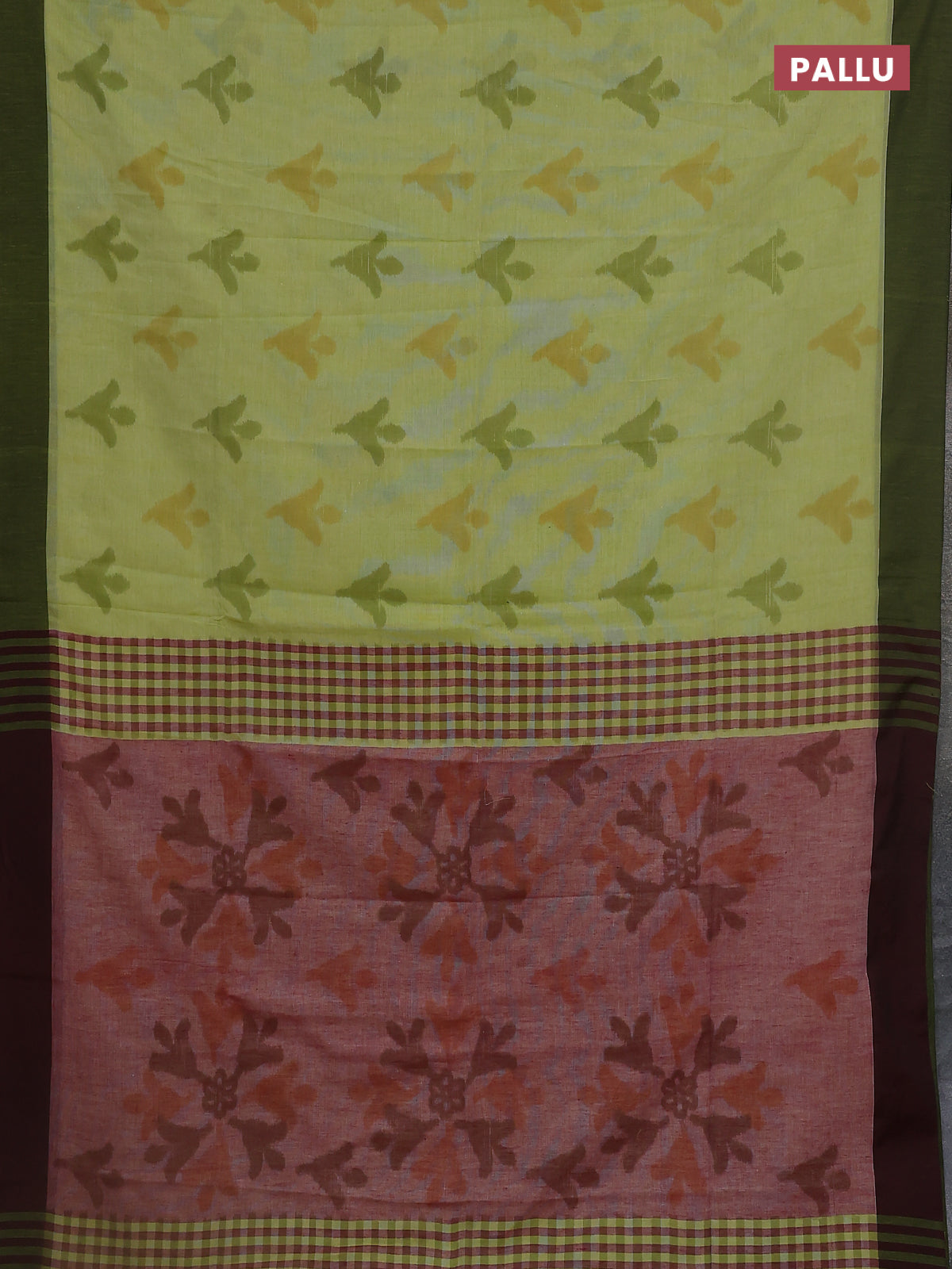 Bengal soft cotton saree fluorescent green and maroon with allover weaves and simple border