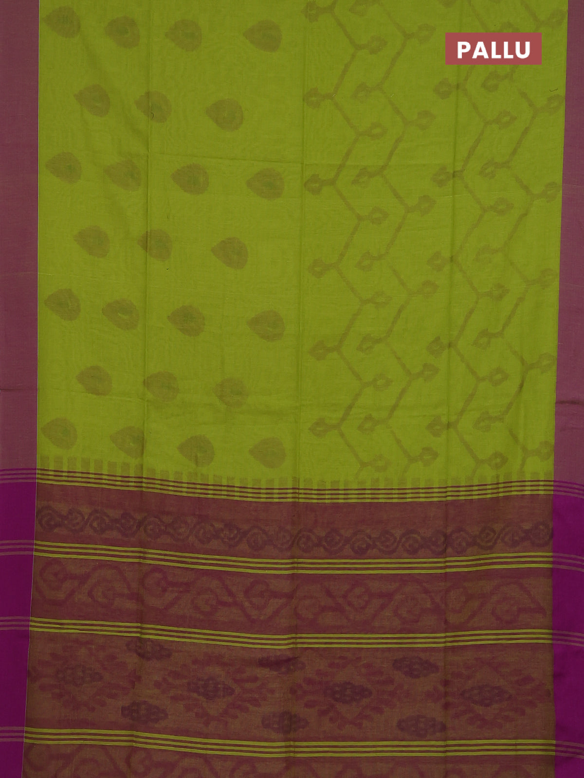 Bengal soft cotton saree light green and purple with allover weaves and simple border