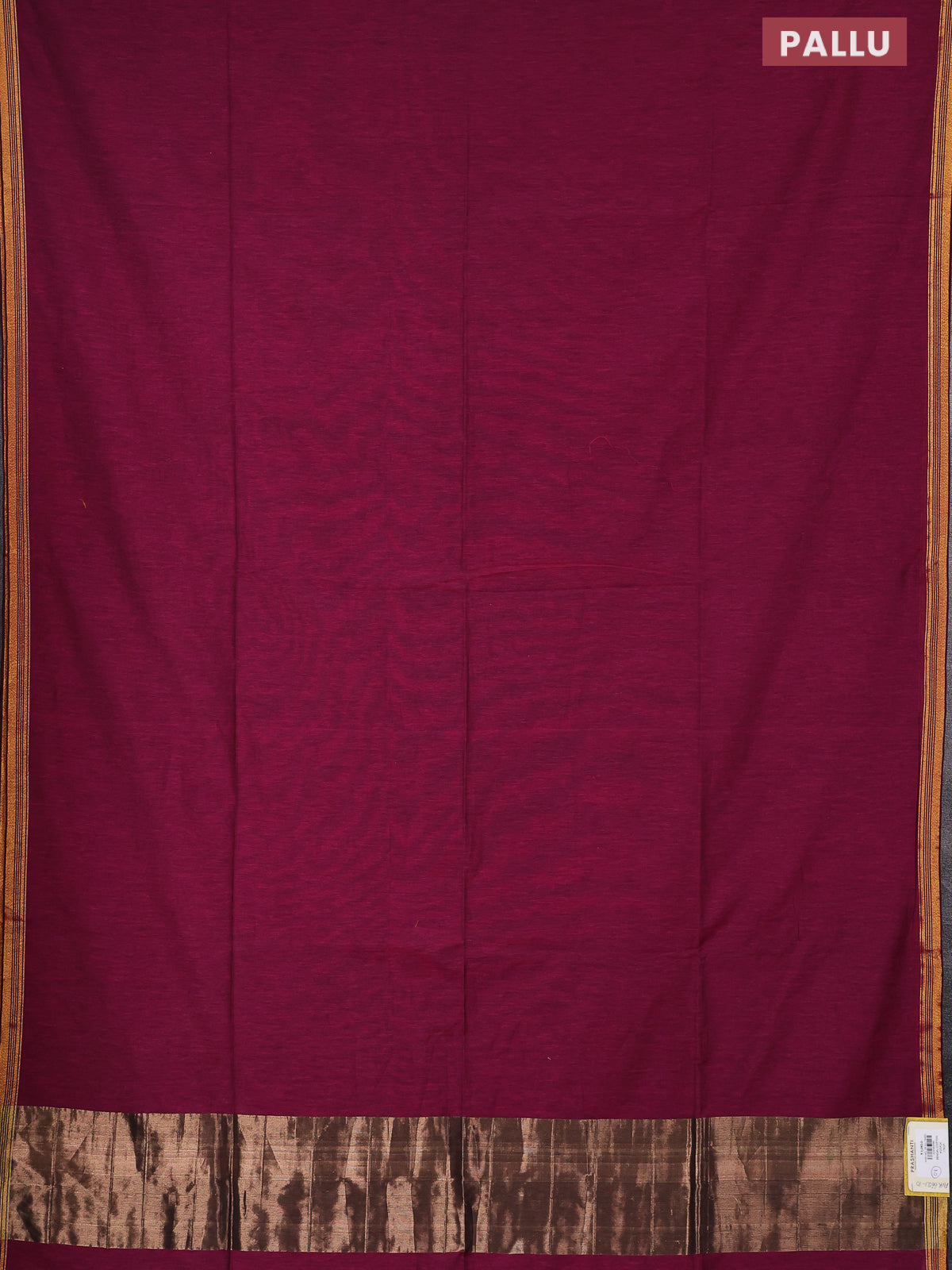 Bengal soft cotton saree magenta pink with plain body and zari woven piping border
