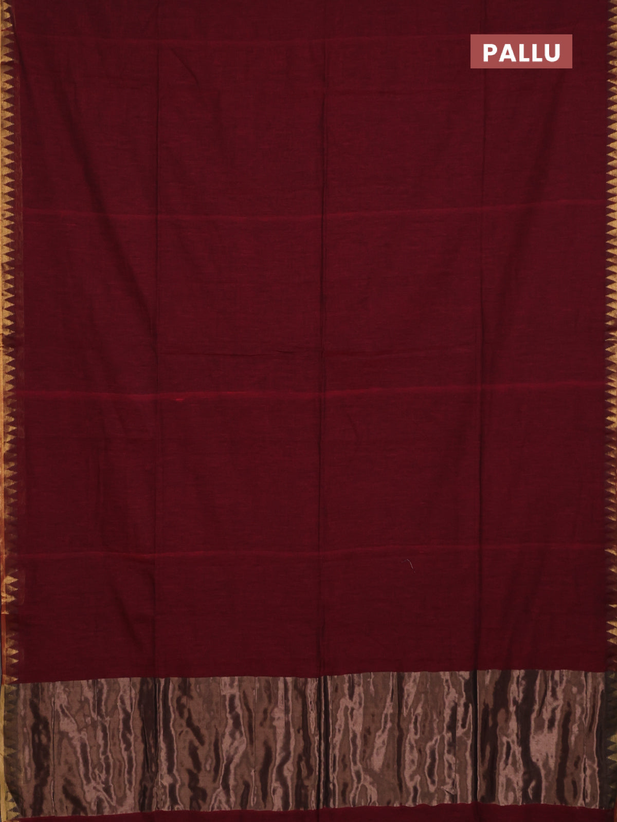 Bengal soft cotton saree maroon and blue with plain body and zari woven border
