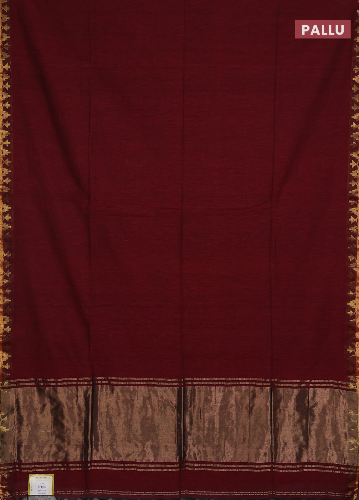 Bengal soft cotton saree maroon and blue with plain body and zari woven border