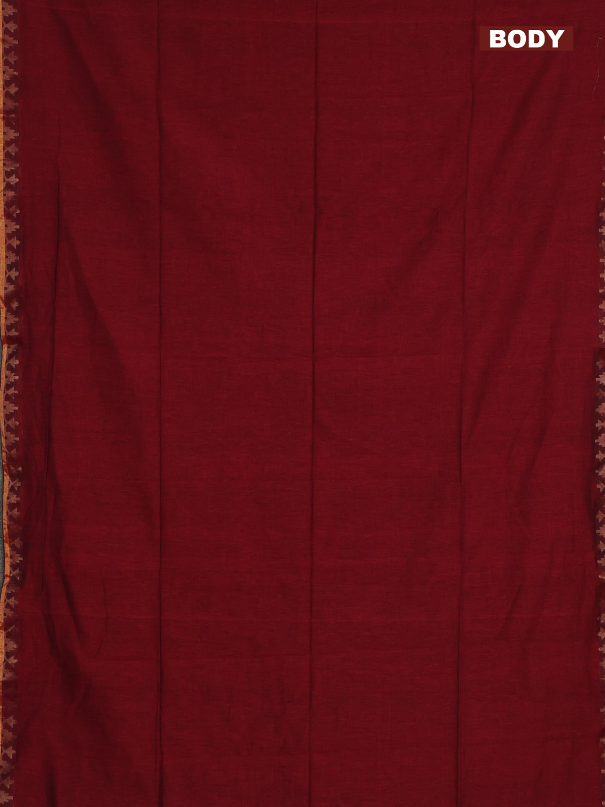 Bengal soft cotton saree maroon and cs blue with plain body and zari woven border