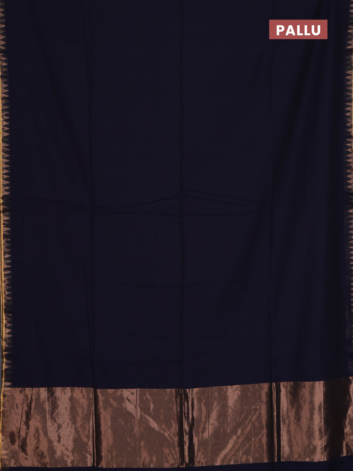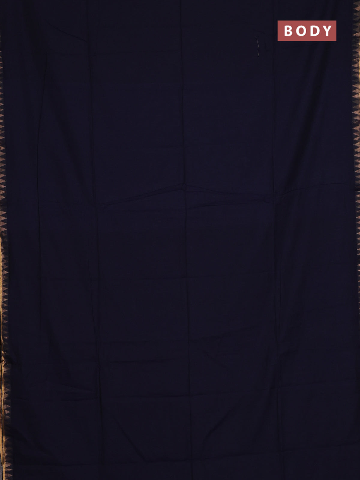 Bengal soft cotton saree navy blue and beige with plain body and zari woven border