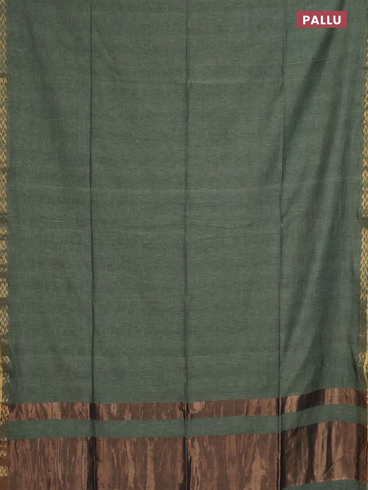Bengal soft cotton saree pastel green and blue with plain body and zari woven border