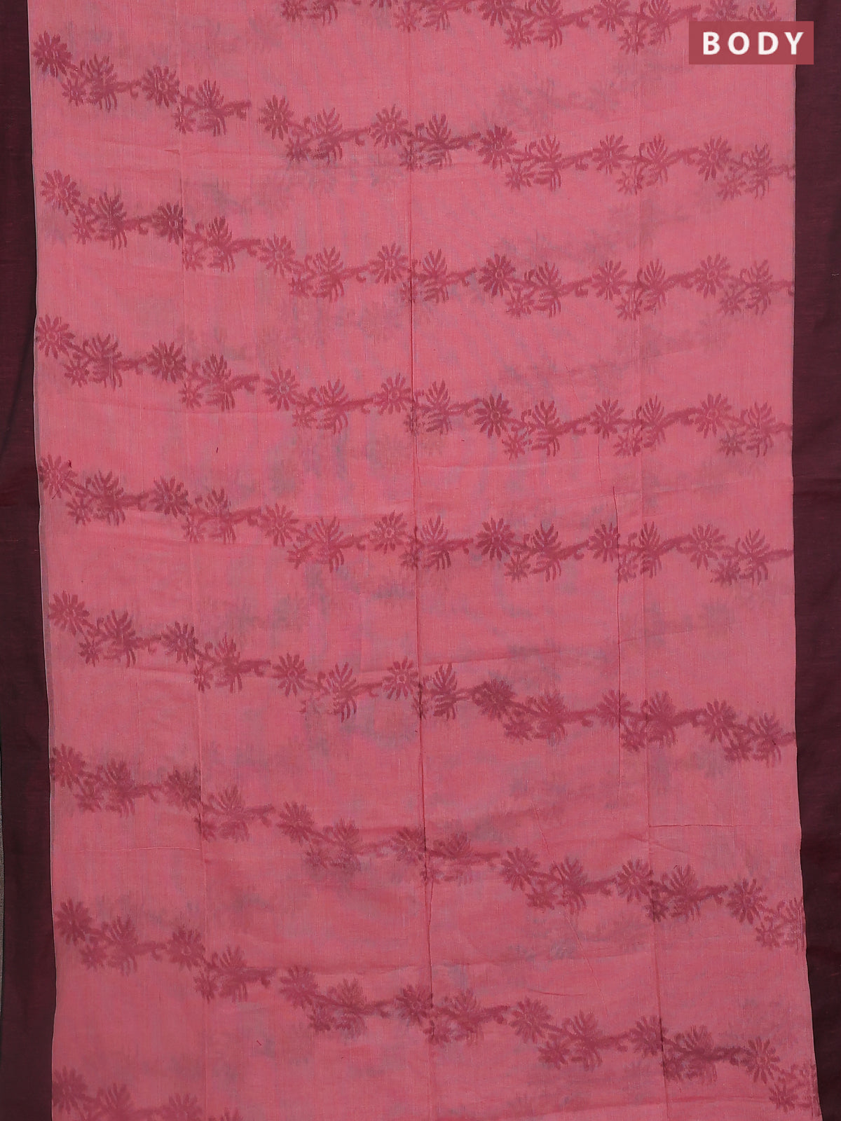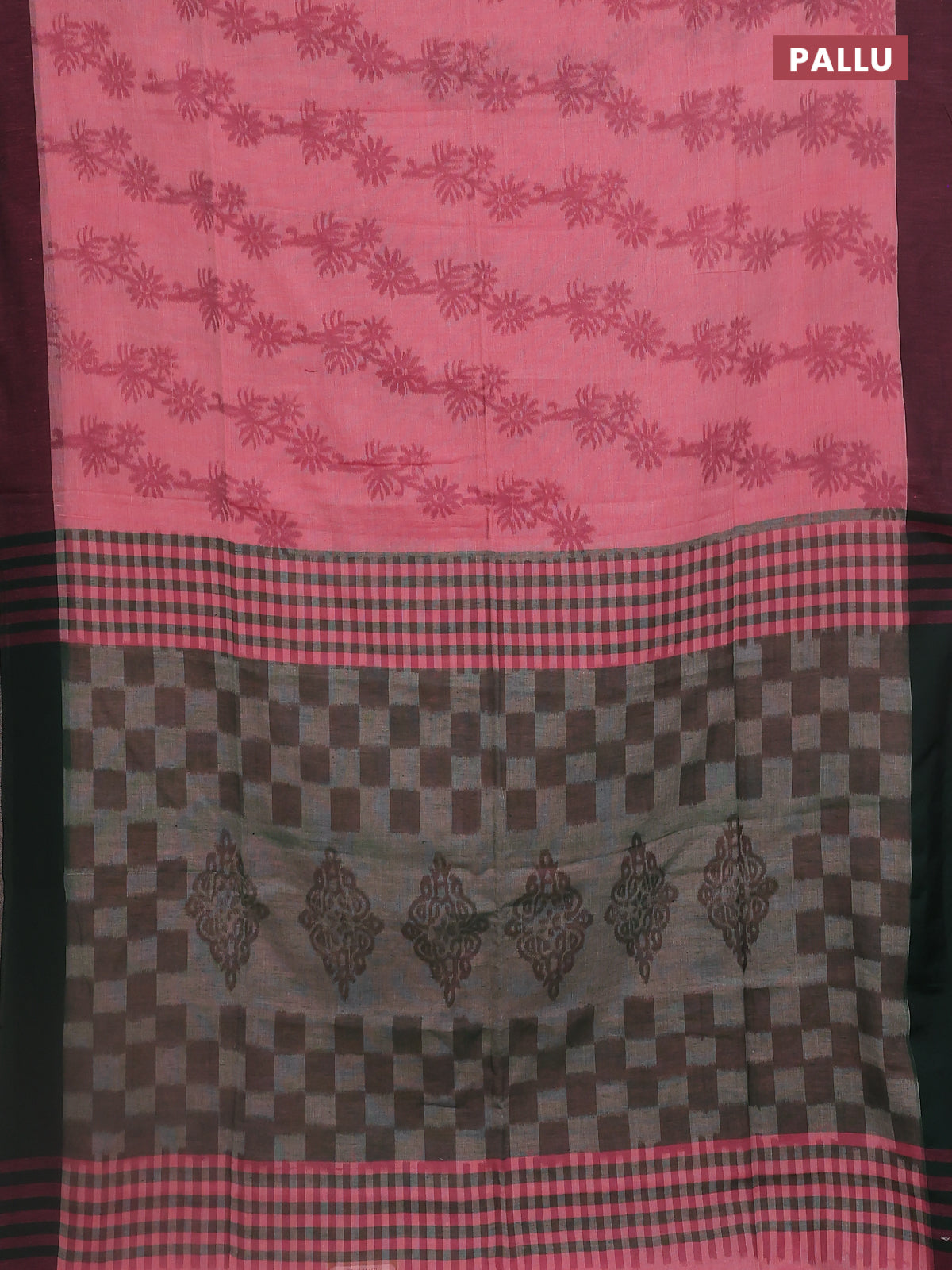 Bengal soft cotton saree peach pink and green with allover weaves and simple border