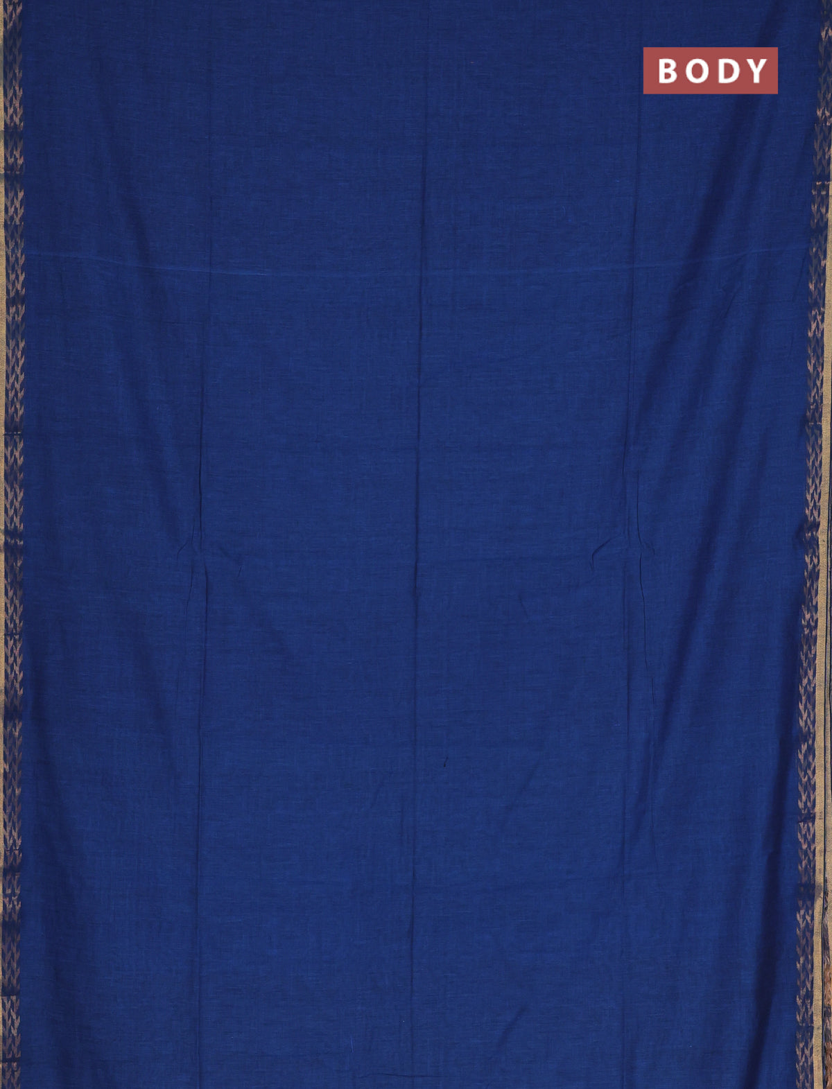 Bengal soft cotton saree peacock blue and red with plain body and zari woven border