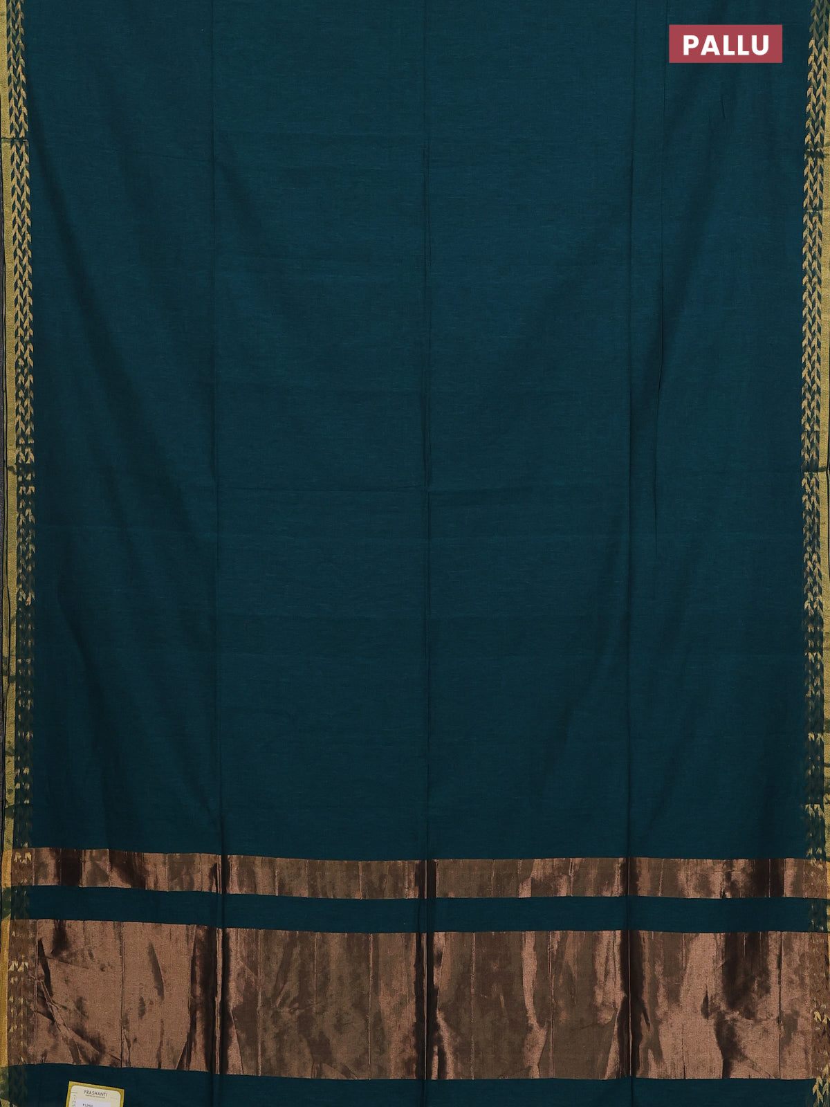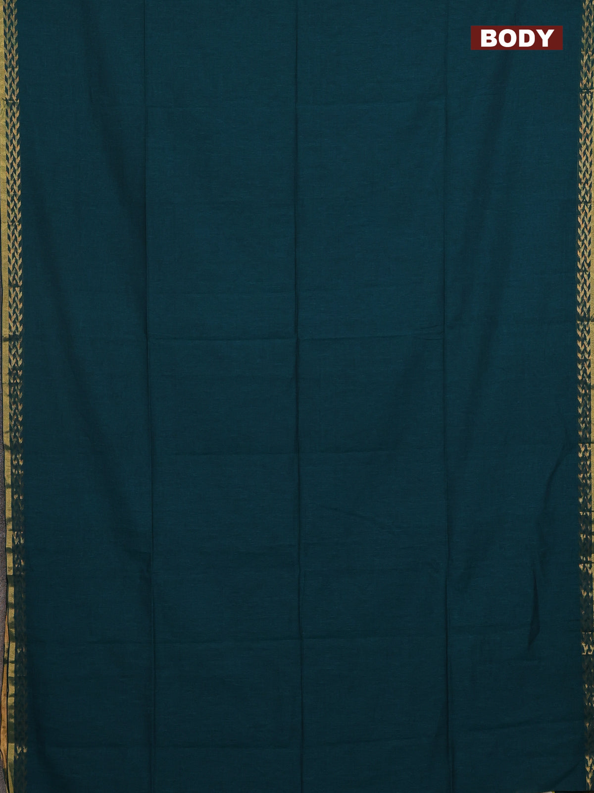 Bengal soft cotton saree peacock green and maroon with plain body and zari woven border