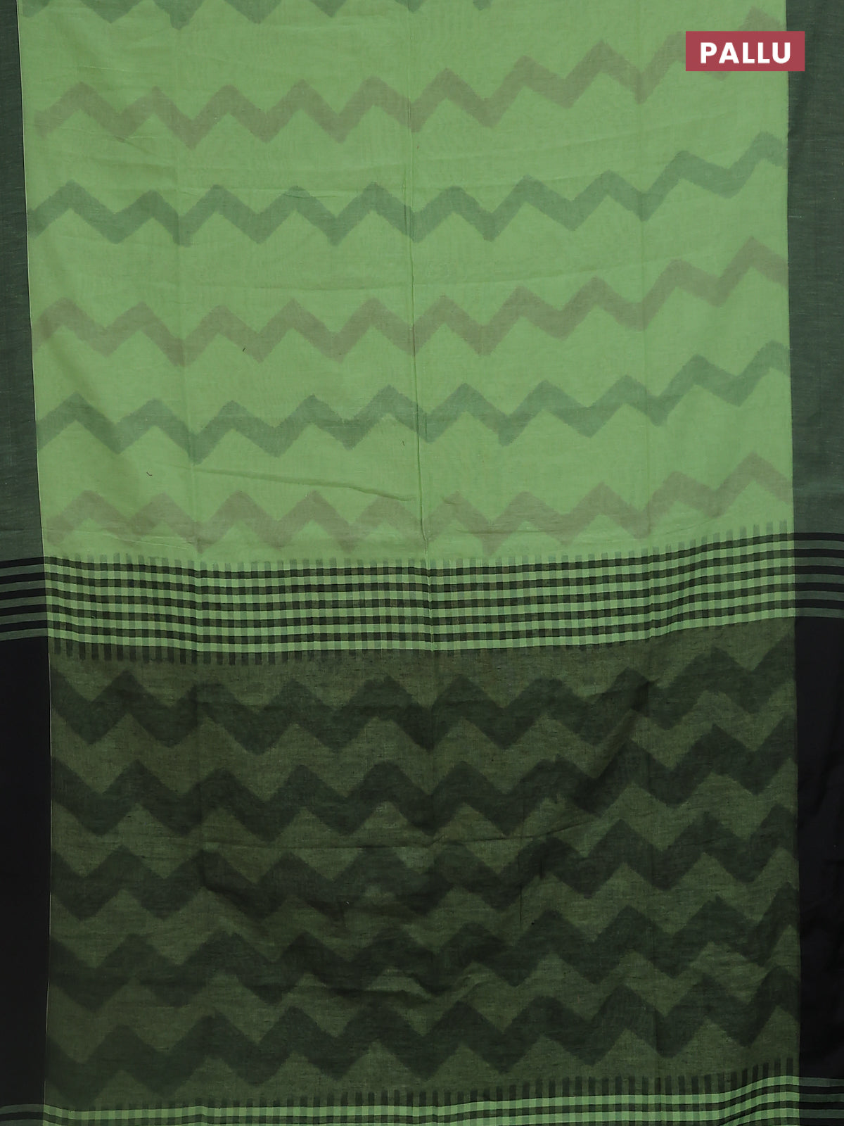 Bengal soft cotton saree pista green and black with allover weaves and simple border