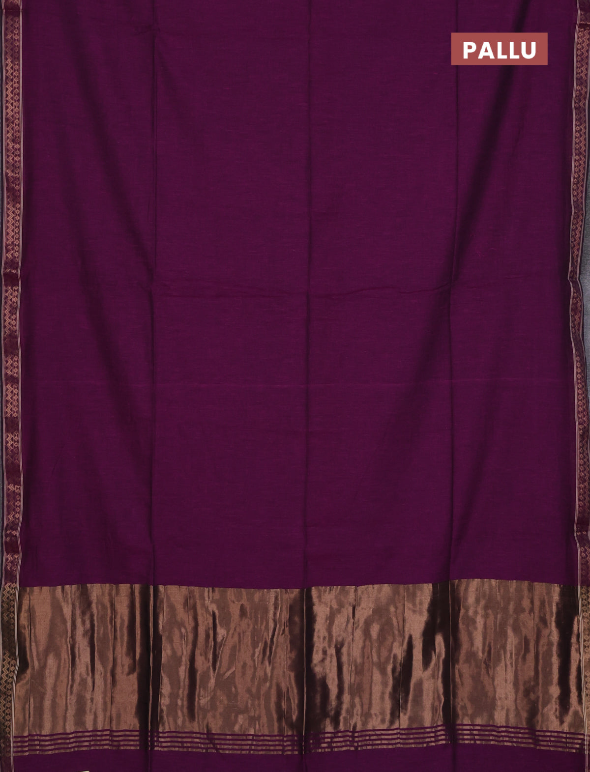 Bengal soft cotton saree purple and blue with plain body and zari woven border