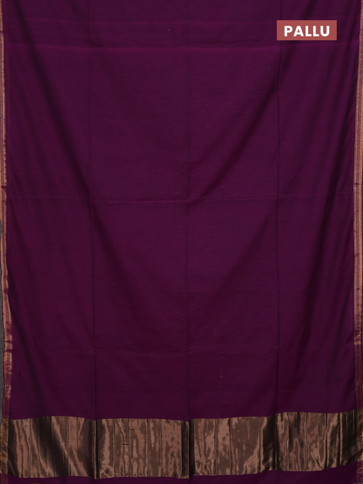 Bengal soft cotton saree purple and blue with plain body and zari woven border