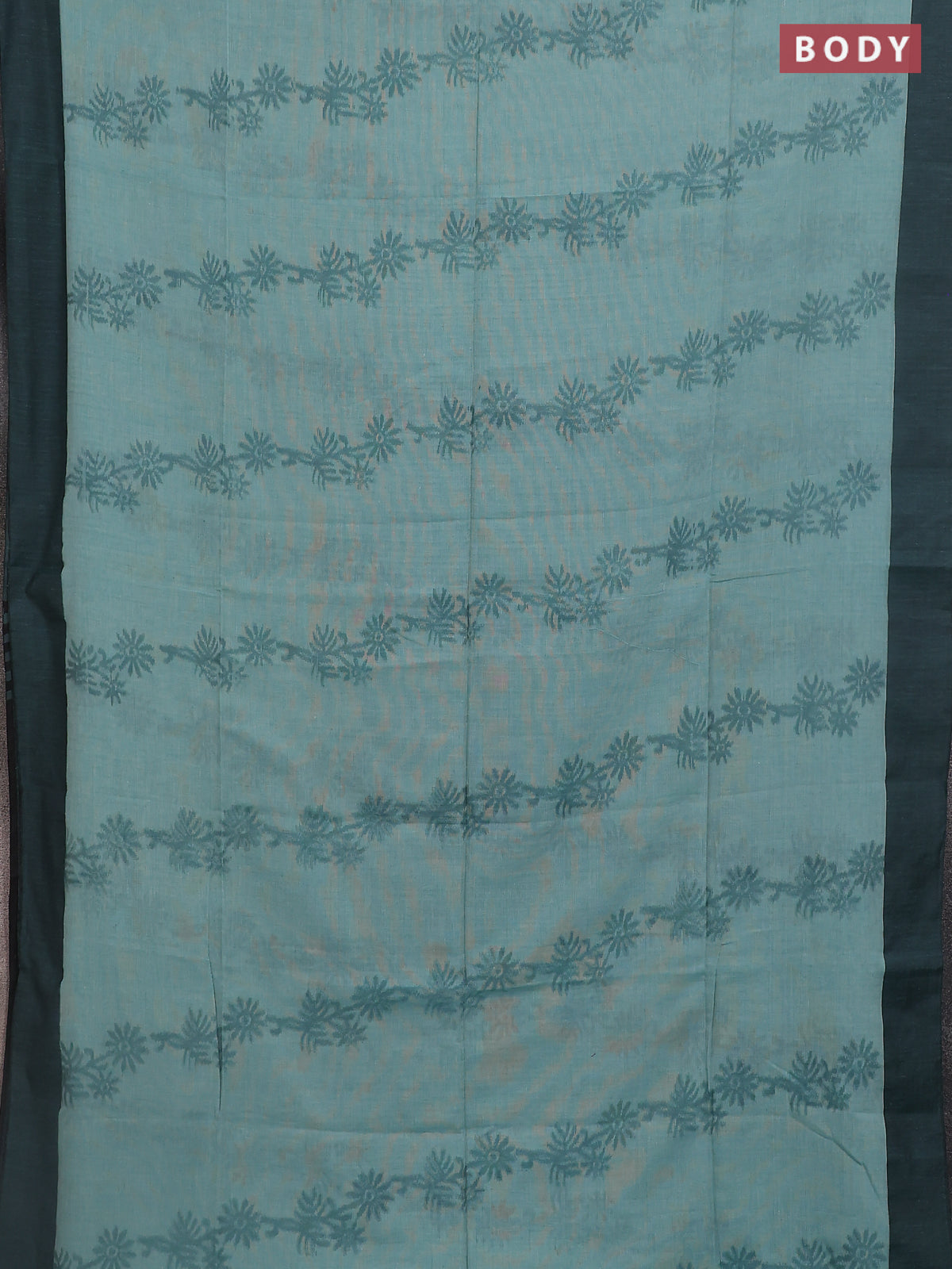 Bengal soft cotton saree teal blue and black with allover weaves and simple border