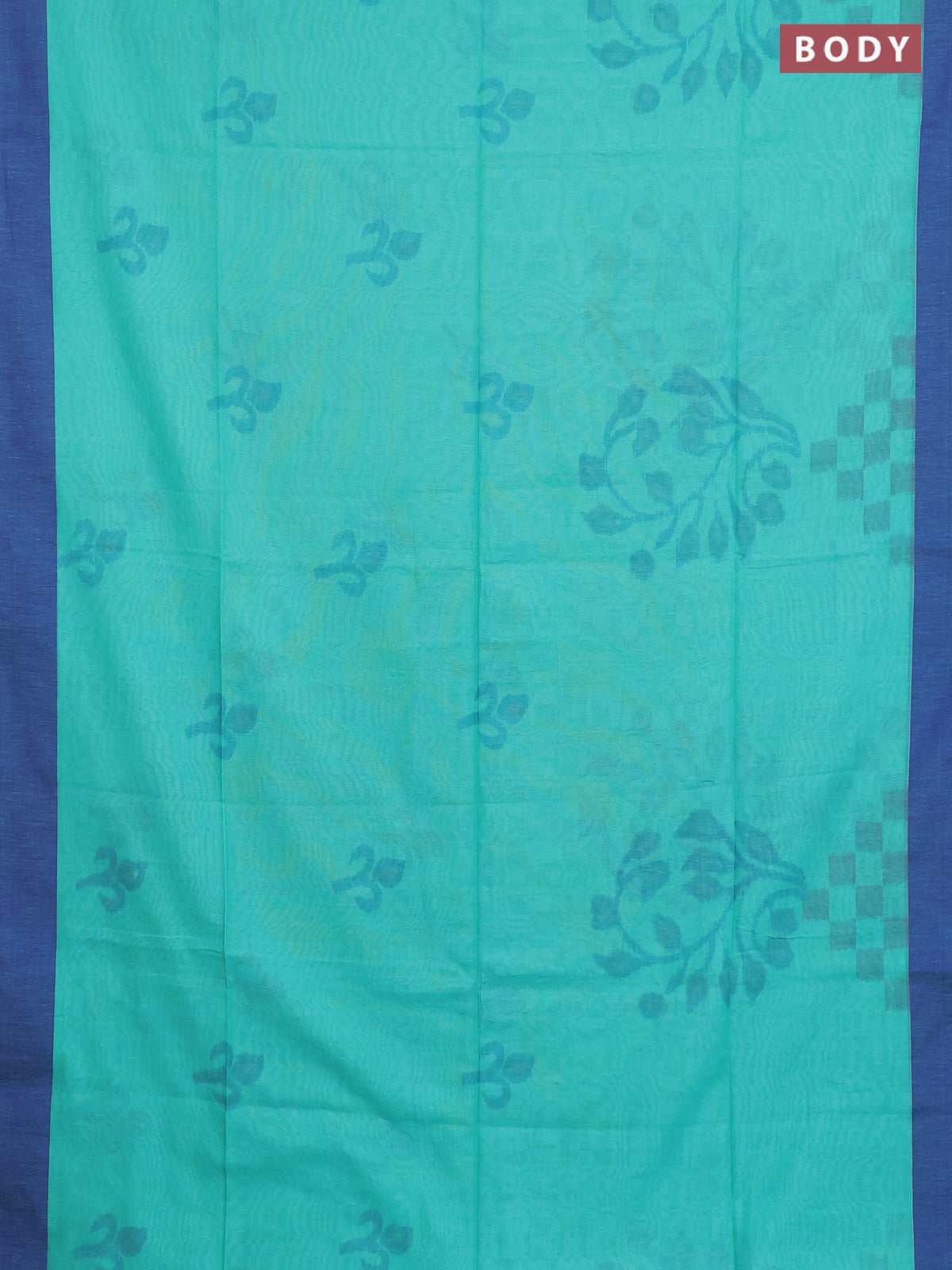 Bengal soft cotton saree teal blue and blue with allover weaves and simple border