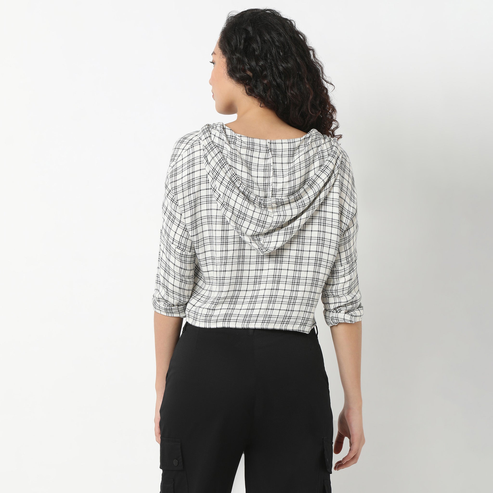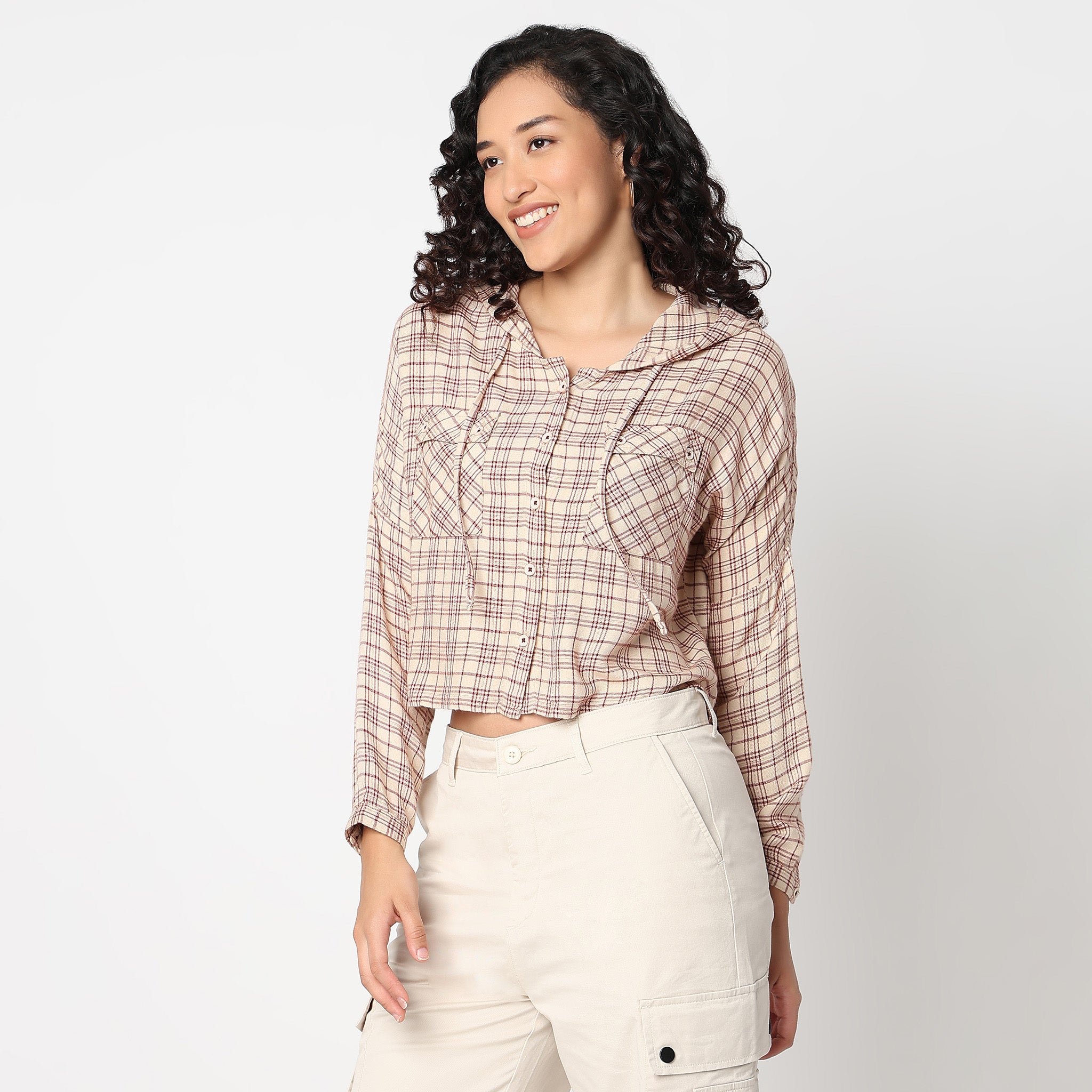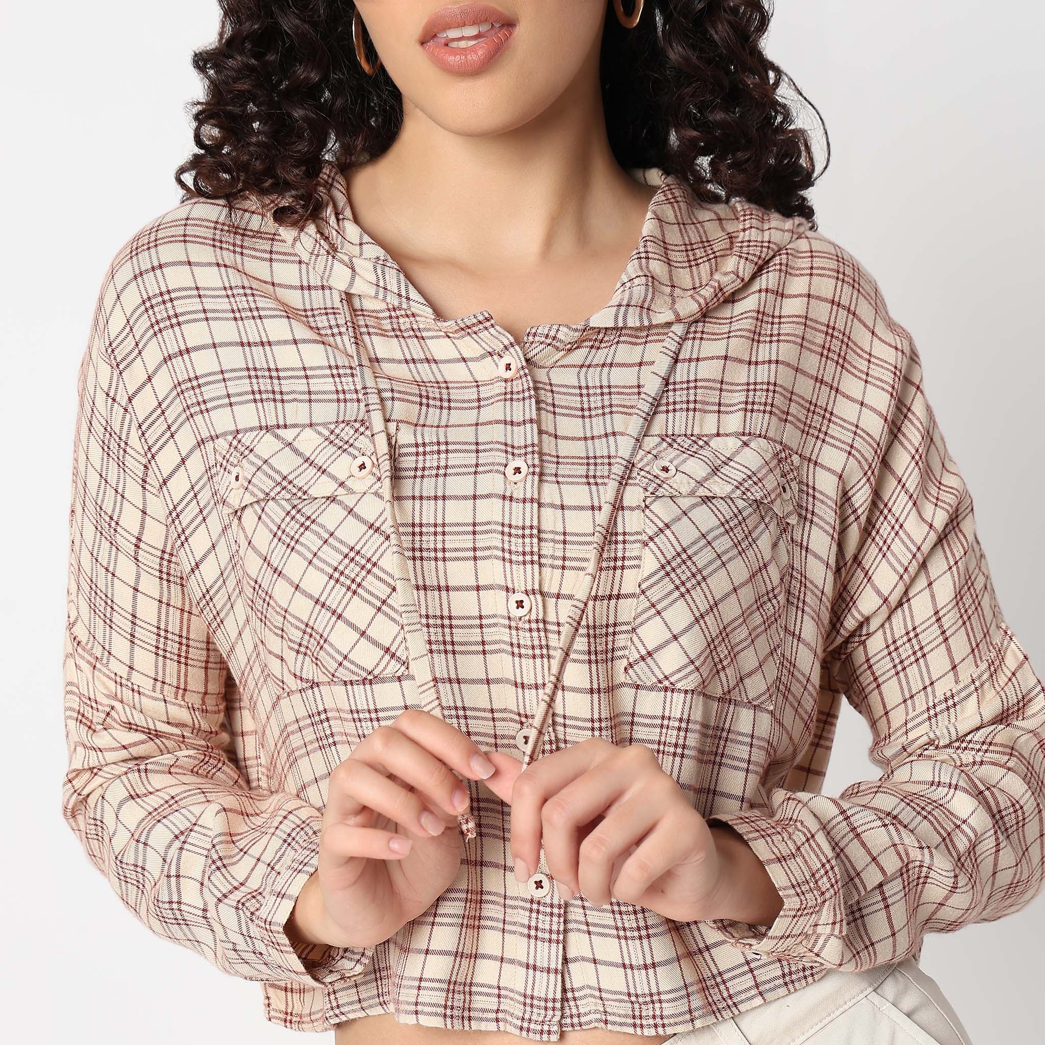 Betty Checkered Hoodie Style Cropped Shirt