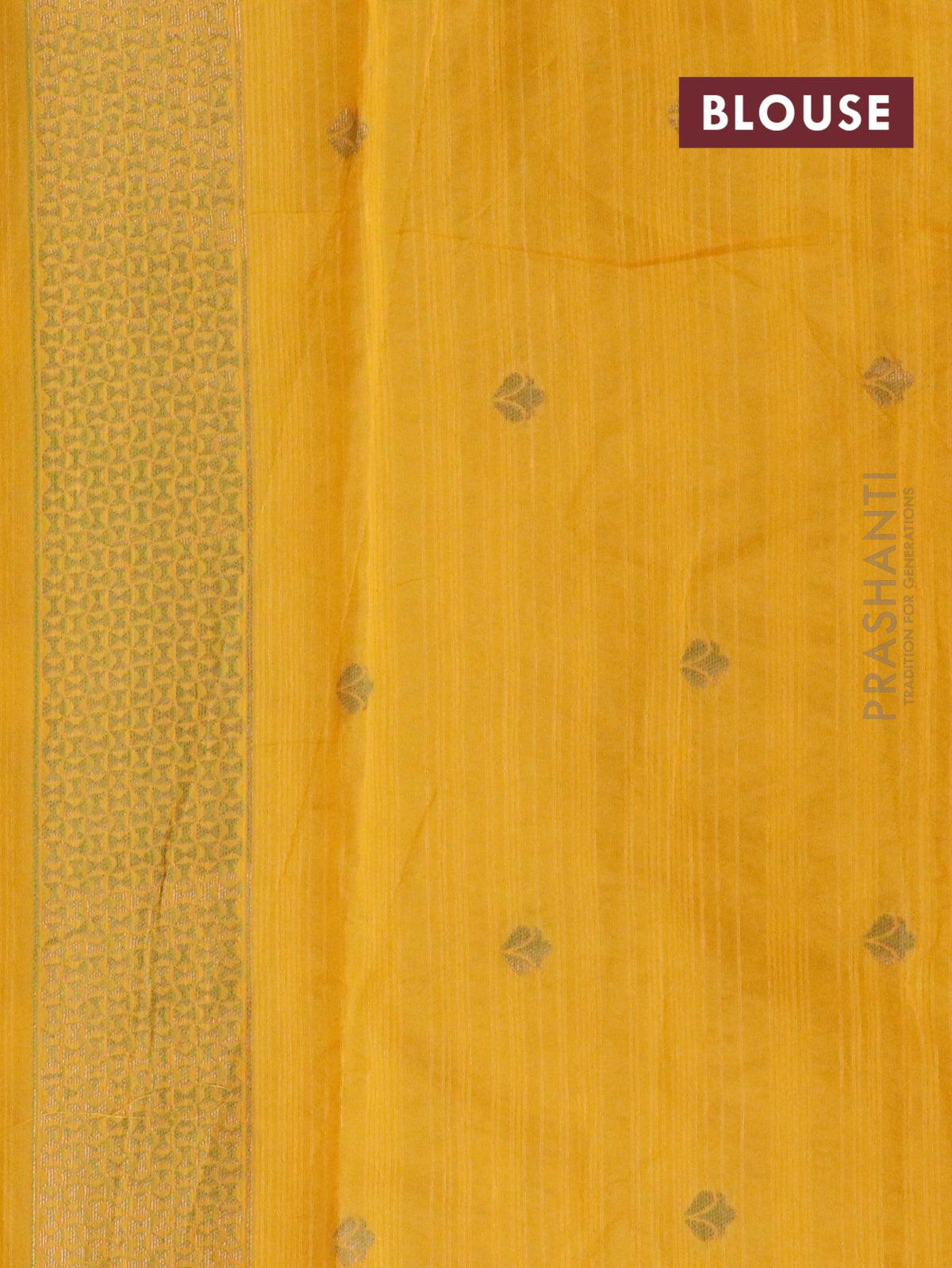 Bhagalpuri silk saree mango yellow with allover woven buttas and floral design woven border