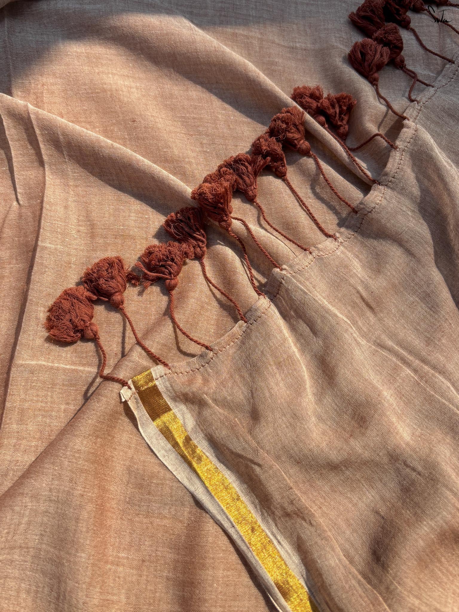 The mul cotton is what we call ˜made in heaven at Suta. Known in West Bengal as mul mul, the fabric is buttery soft and delicately beautiful. The weave of this fabric is very fine, and this lends a very fluid texture to it that makes draping it a breeze. It is truly like a hug that wraps you in its love!