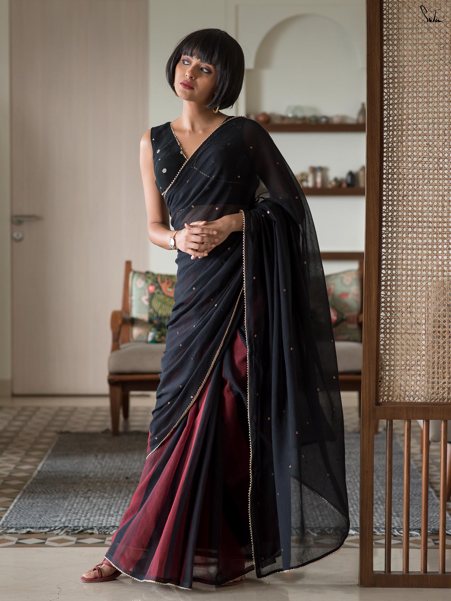Note: Our mul sarees are slightly transparent, it’s the nature of the fabric and part of its soft, airy charm.