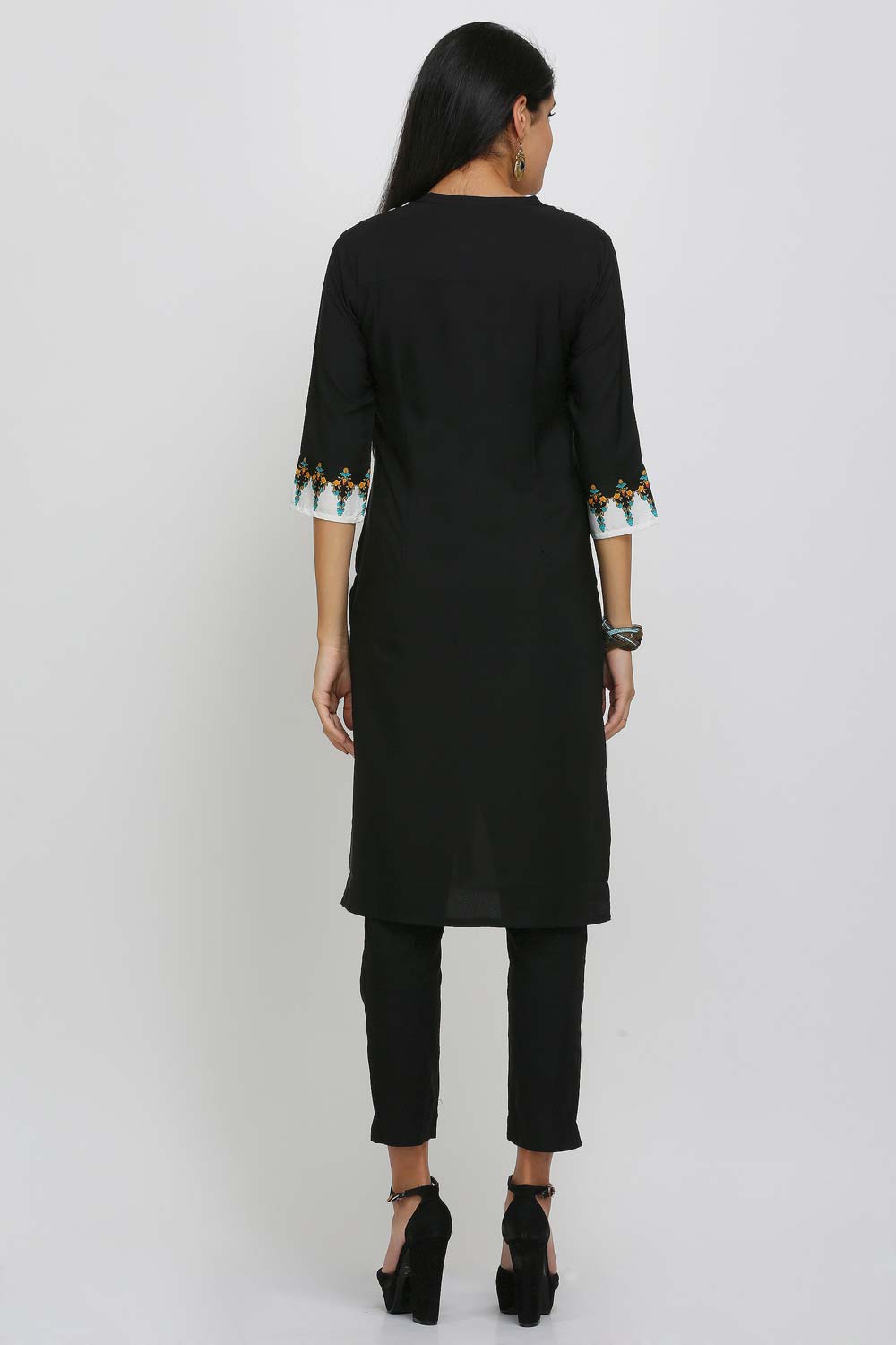 Black & White Printed Mandarin Neck kurta