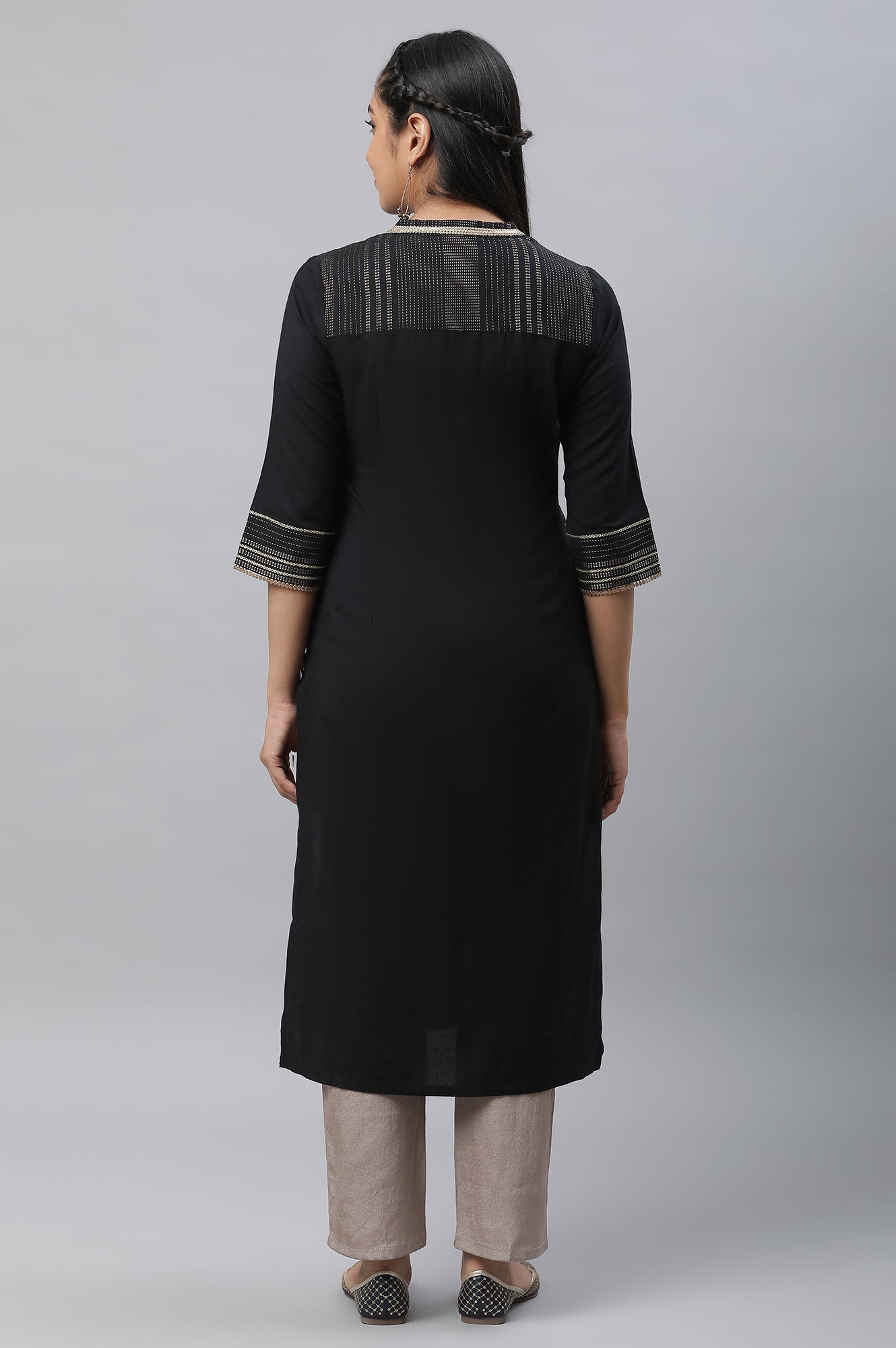 A classic straight fit kurta in exclusive zari woven dobby fabric is a perfect choice for any occasion. It also features sequin detailing.