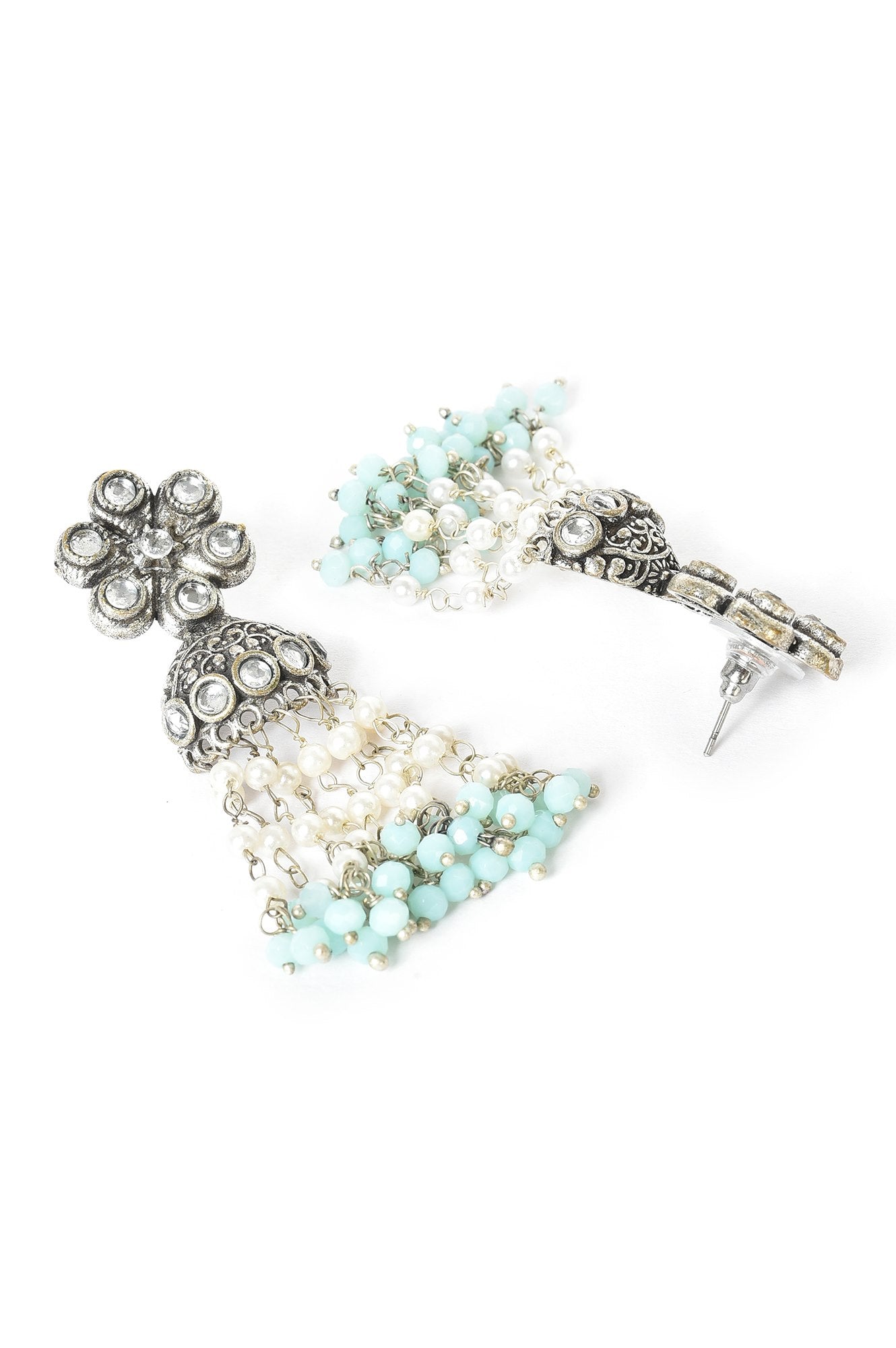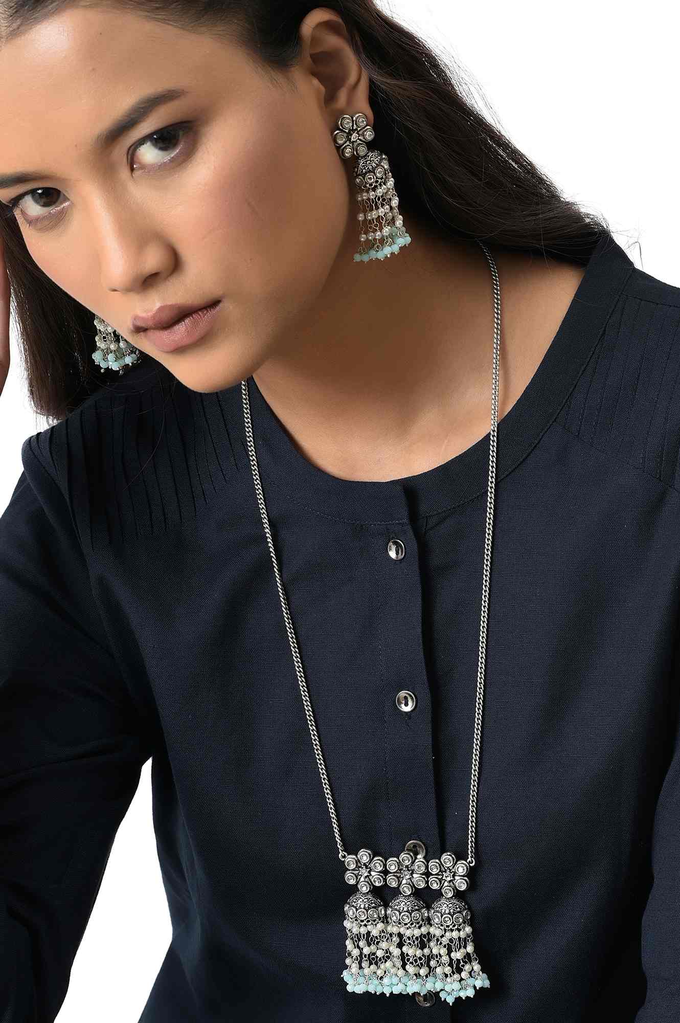 Blue Crystal Beads Silver Oxidised Necklace Set