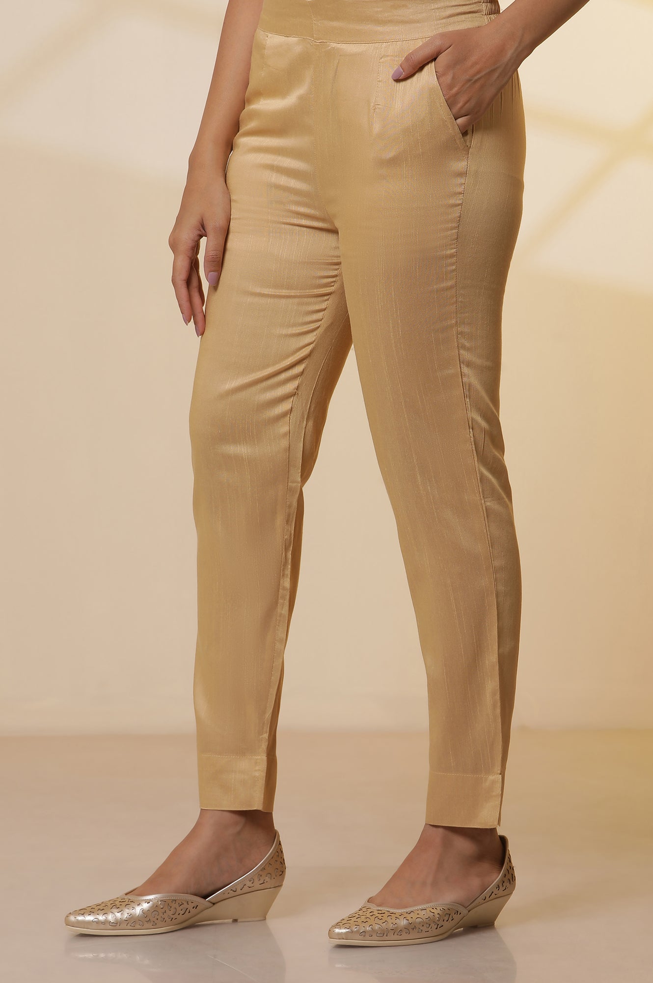 One of our best sellers is back with the twist. This blue coloured lurex stripes kurta set with golden trousers and dupatta is a must have. The kurta has embellished yoke and sleeves' hemline. It is paired with contrasting golden straight fit trousers and dupatta.