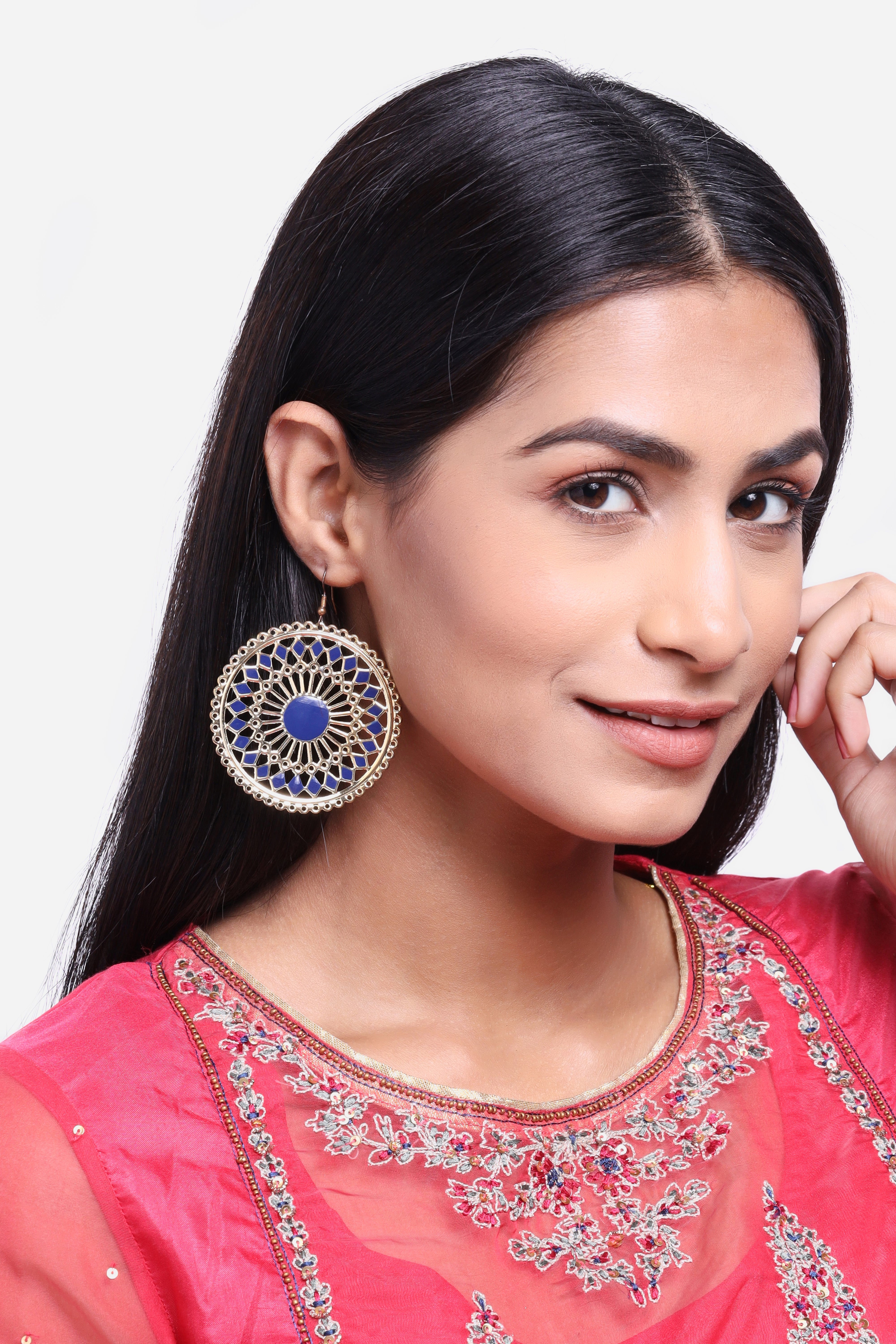 Blue Enamel Handmade Work Statement Earrings