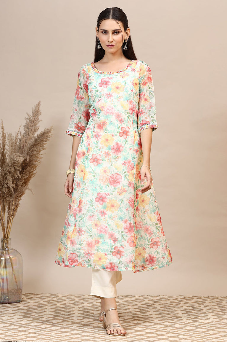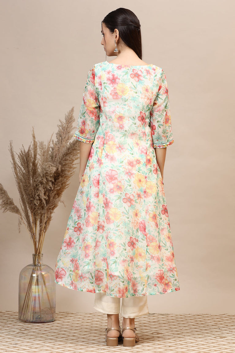 Blue Floral Printed Anarkali Festive Kurta