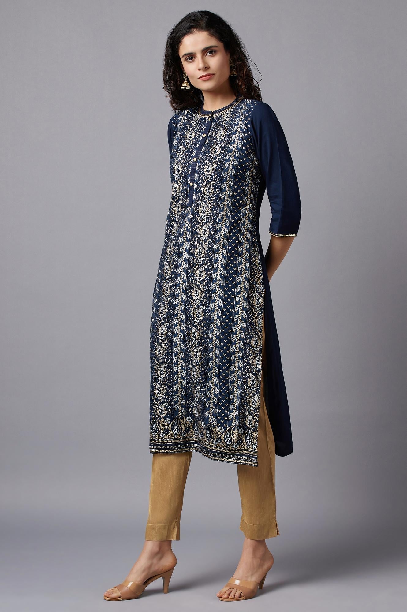 For the modern ethnic look, this kurta is a perfect pick. Crafted in premium fabric, this kurta flatters straight silhouette and foil floral print.