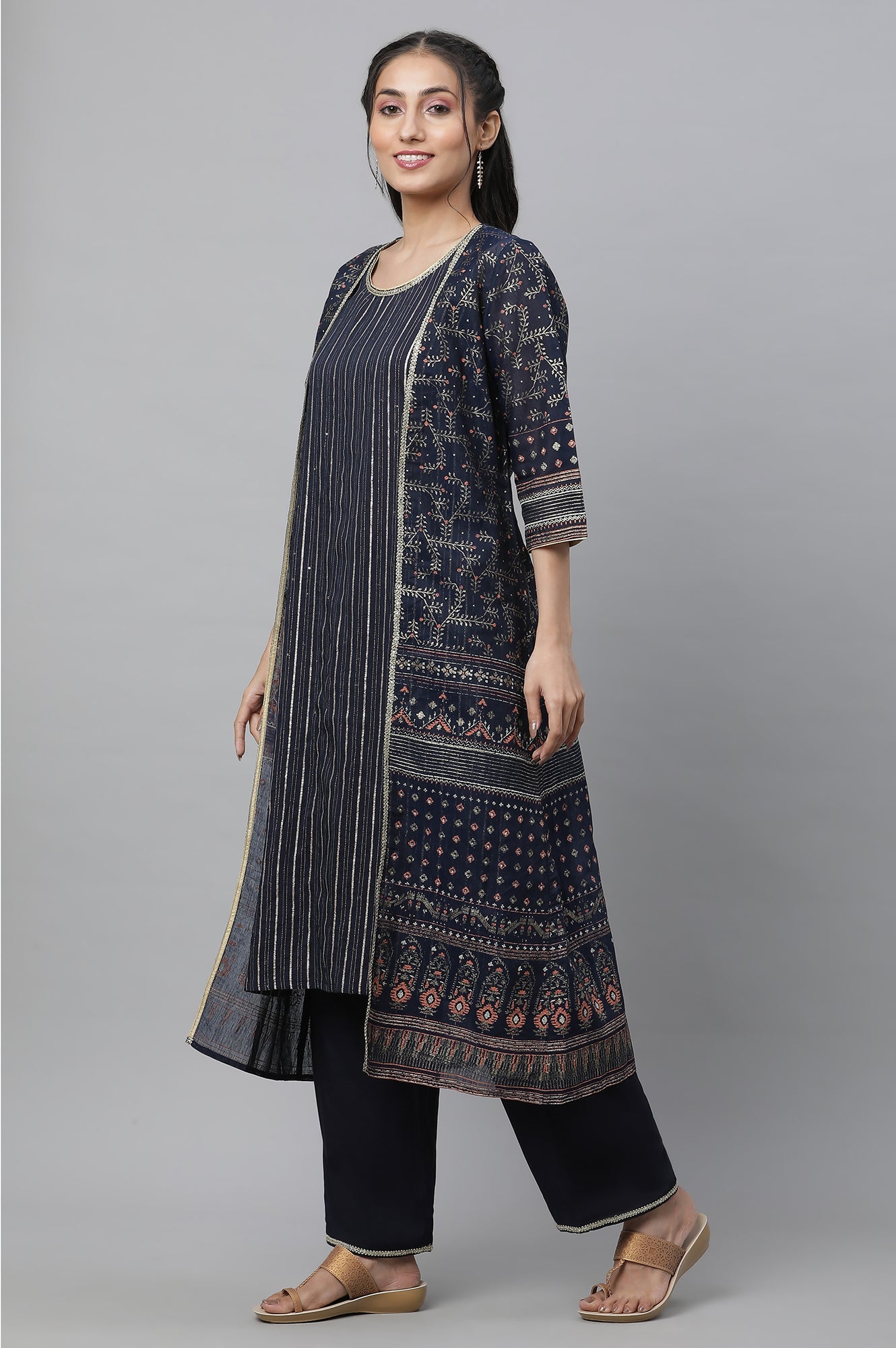 Blue Gilet, Kurta and Narrow Palazzo Festive Set
