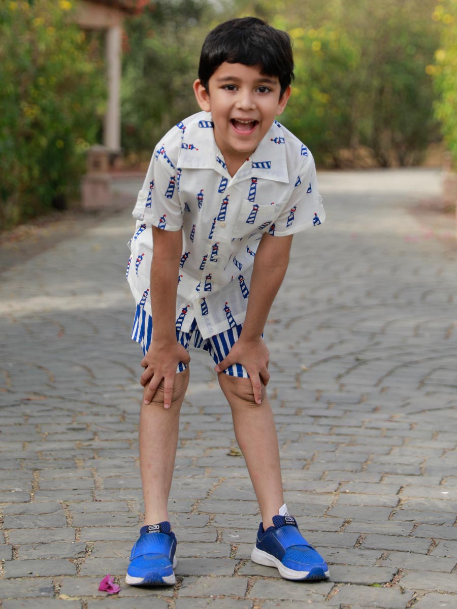 Blue Lighthouse Organic Cotton Block Printed Shirt
