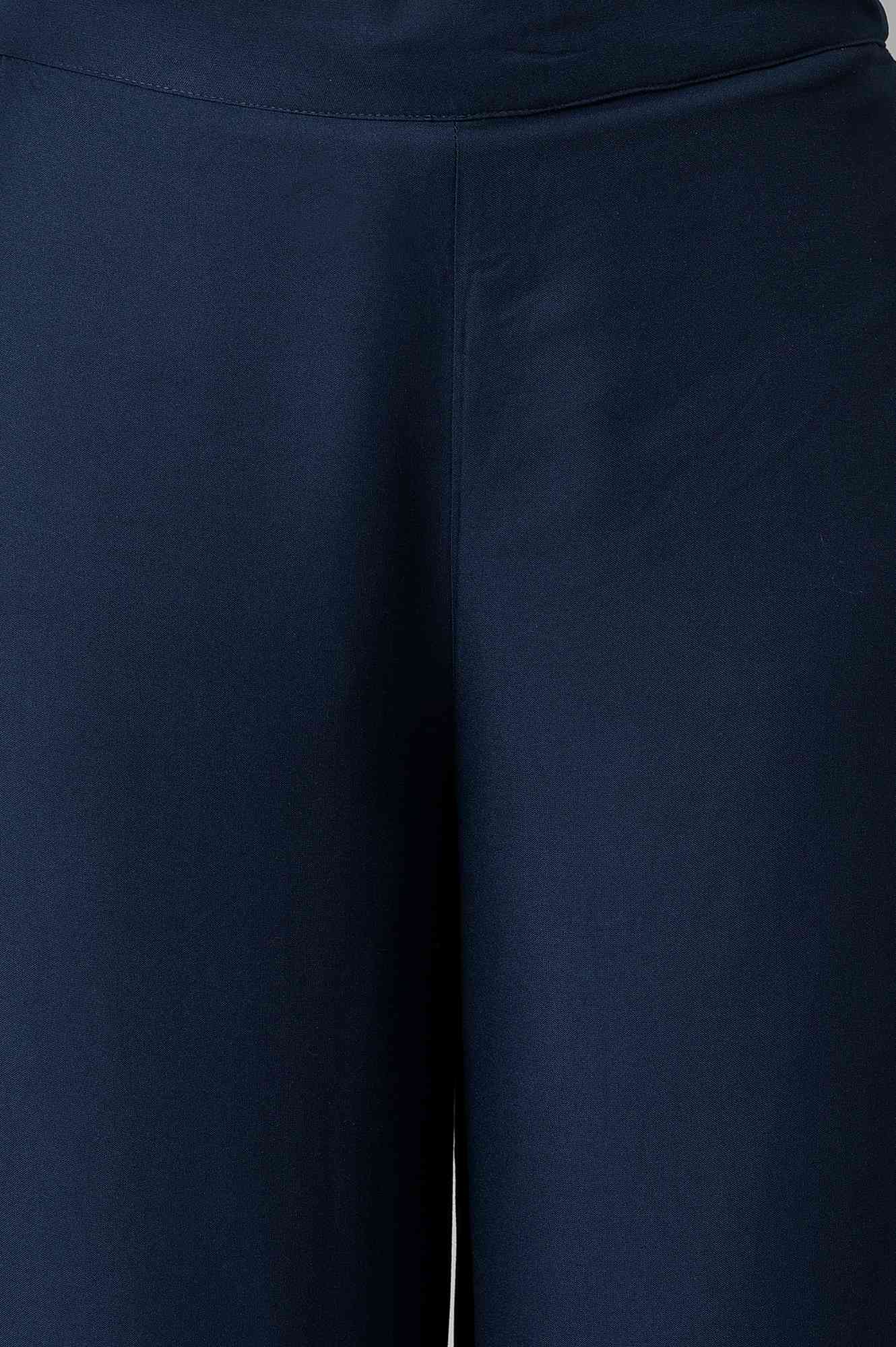 Blue Metallic Embroidery Straight Kurta and Parallel Pant Set
