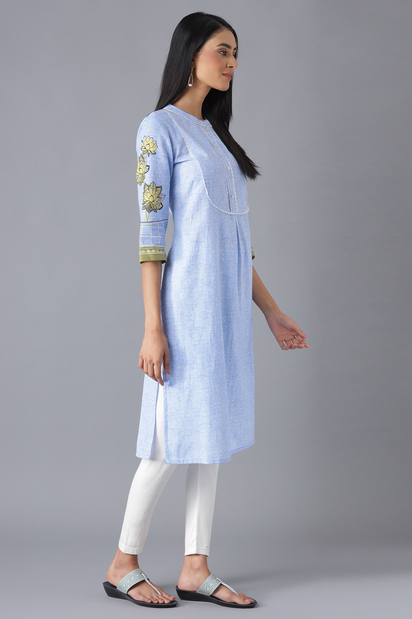 Embrace ethnicity in style by wearing blue coloured kurta. This modern ethnic kurta will uplift your casual look, whether you're on a date or in office it's straight fit will give an elegant yet stylish look.