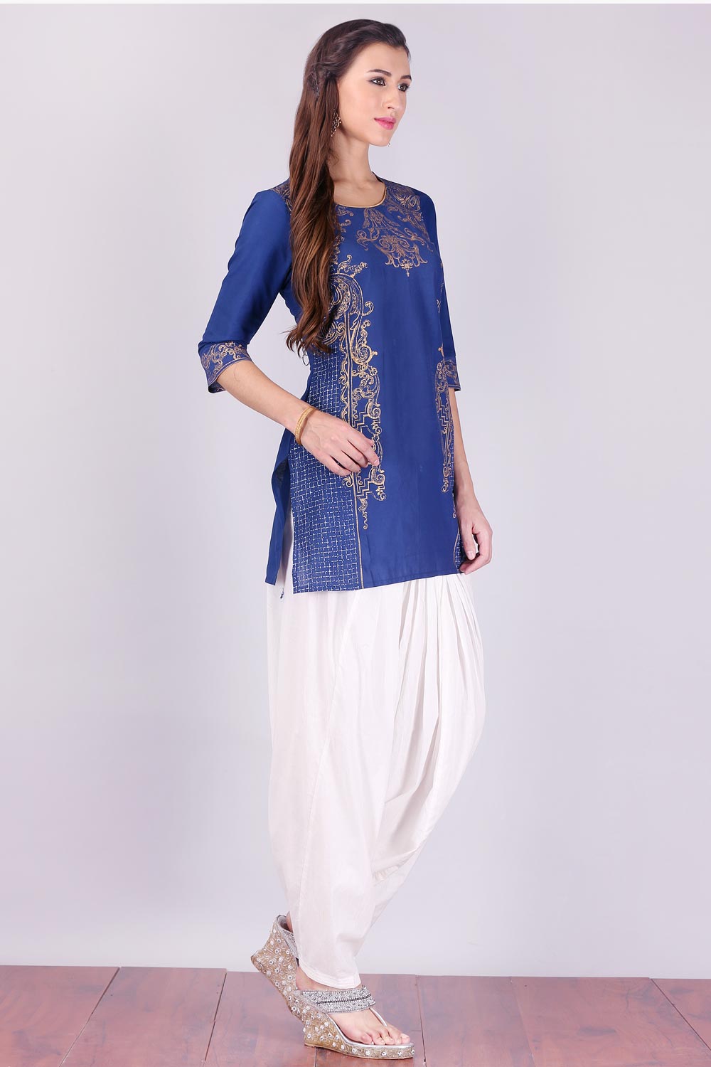 Blue Round Neck 3/4 Sleeve kurta