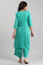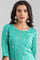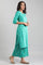 This set has a blue round neck straight kurta and matching printed palazzo pants.