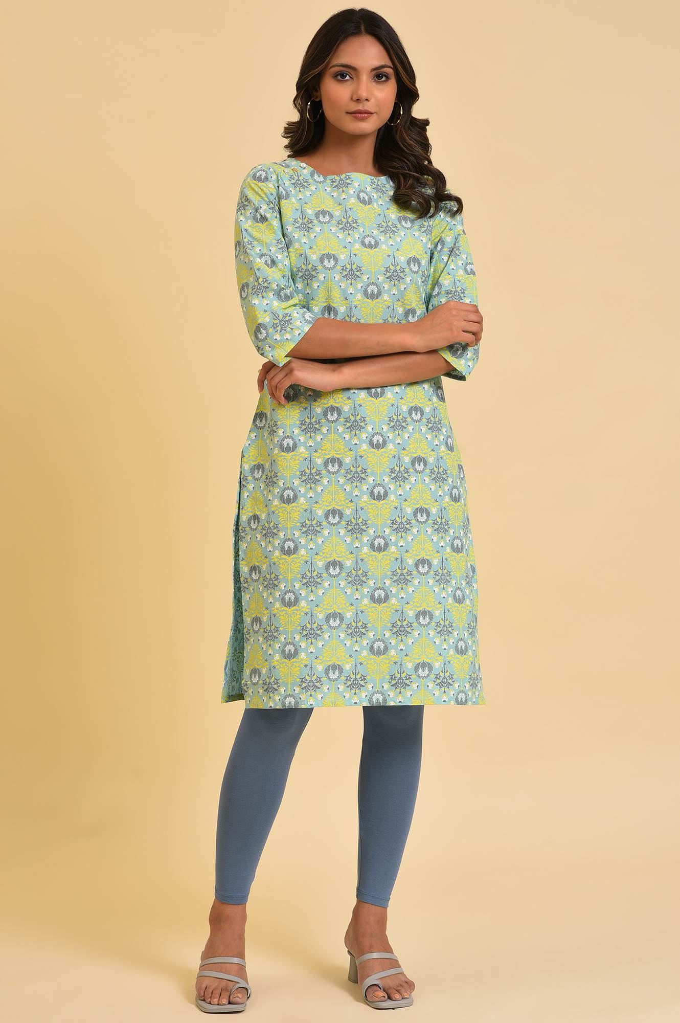 Blue Solid Viscose Lycra Tights