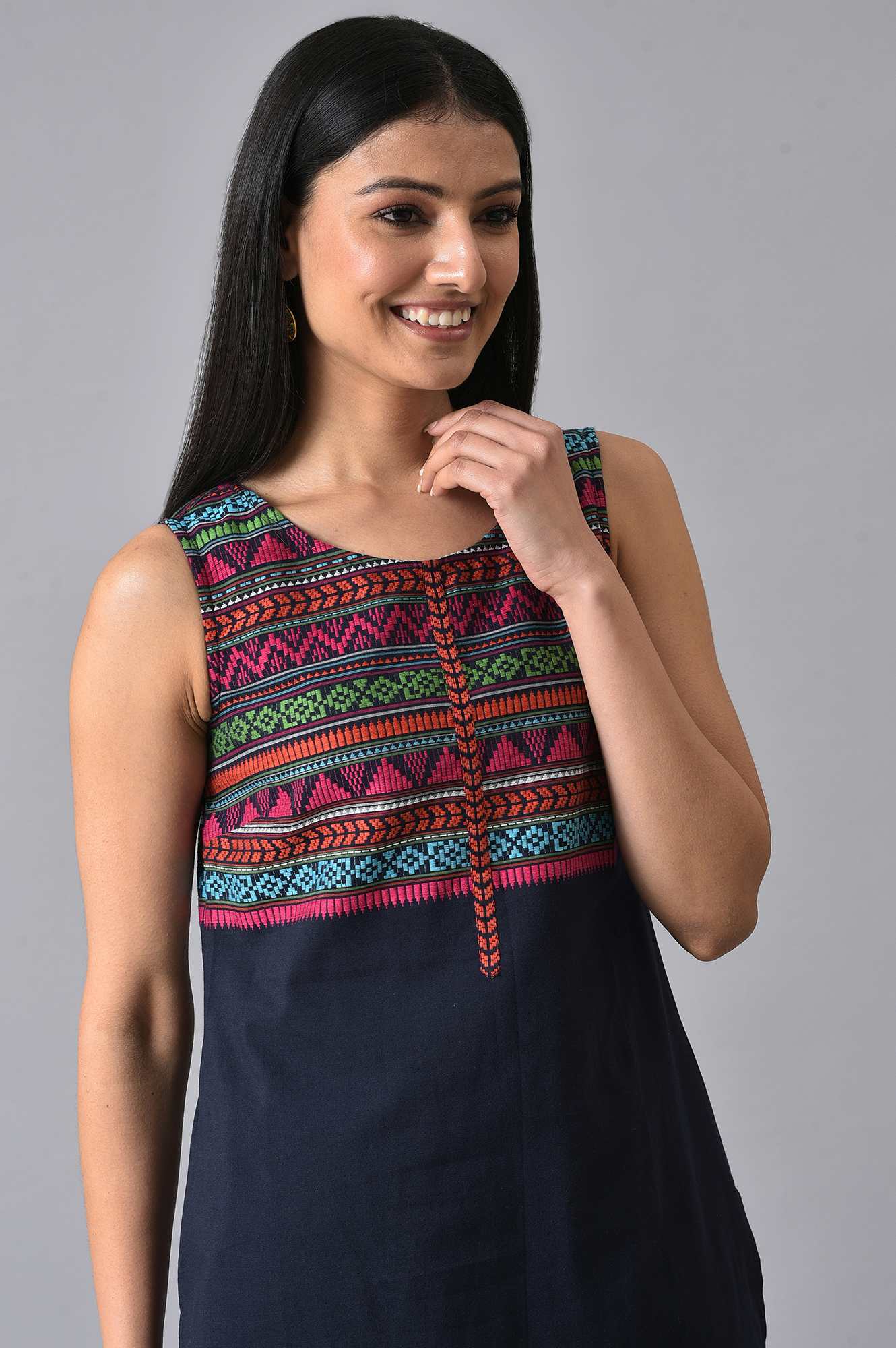 Crafted In Cotton Fabric This Aurelia kurta Has Embellished Yoke, Round Neckline And Designed In Straight Silhouette. It Is A Right Pick For An Evening Look.