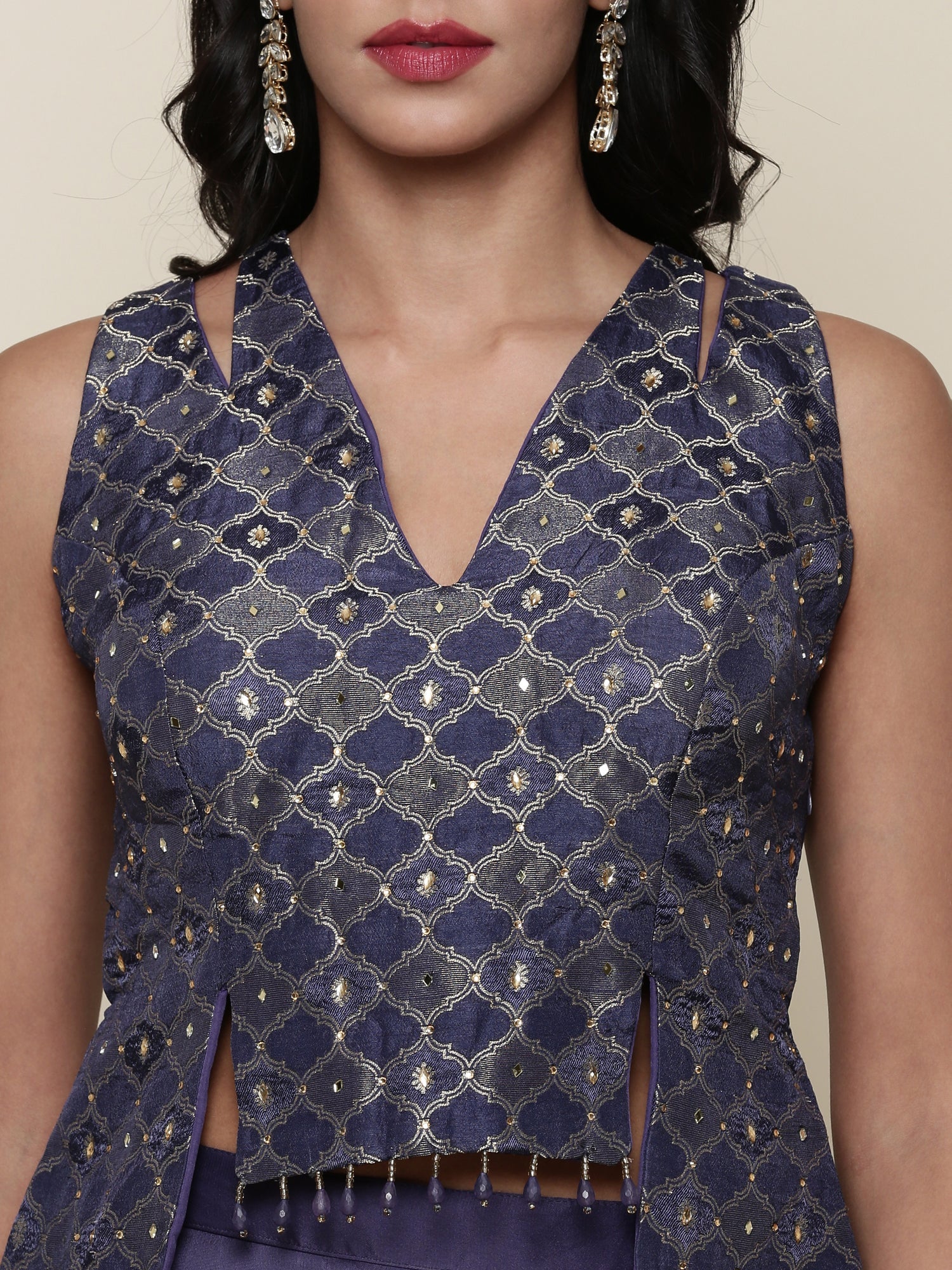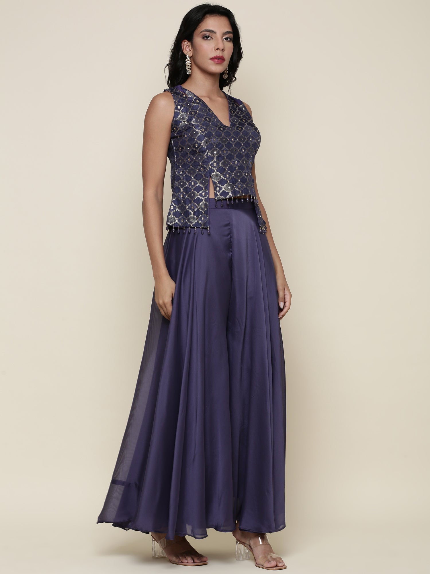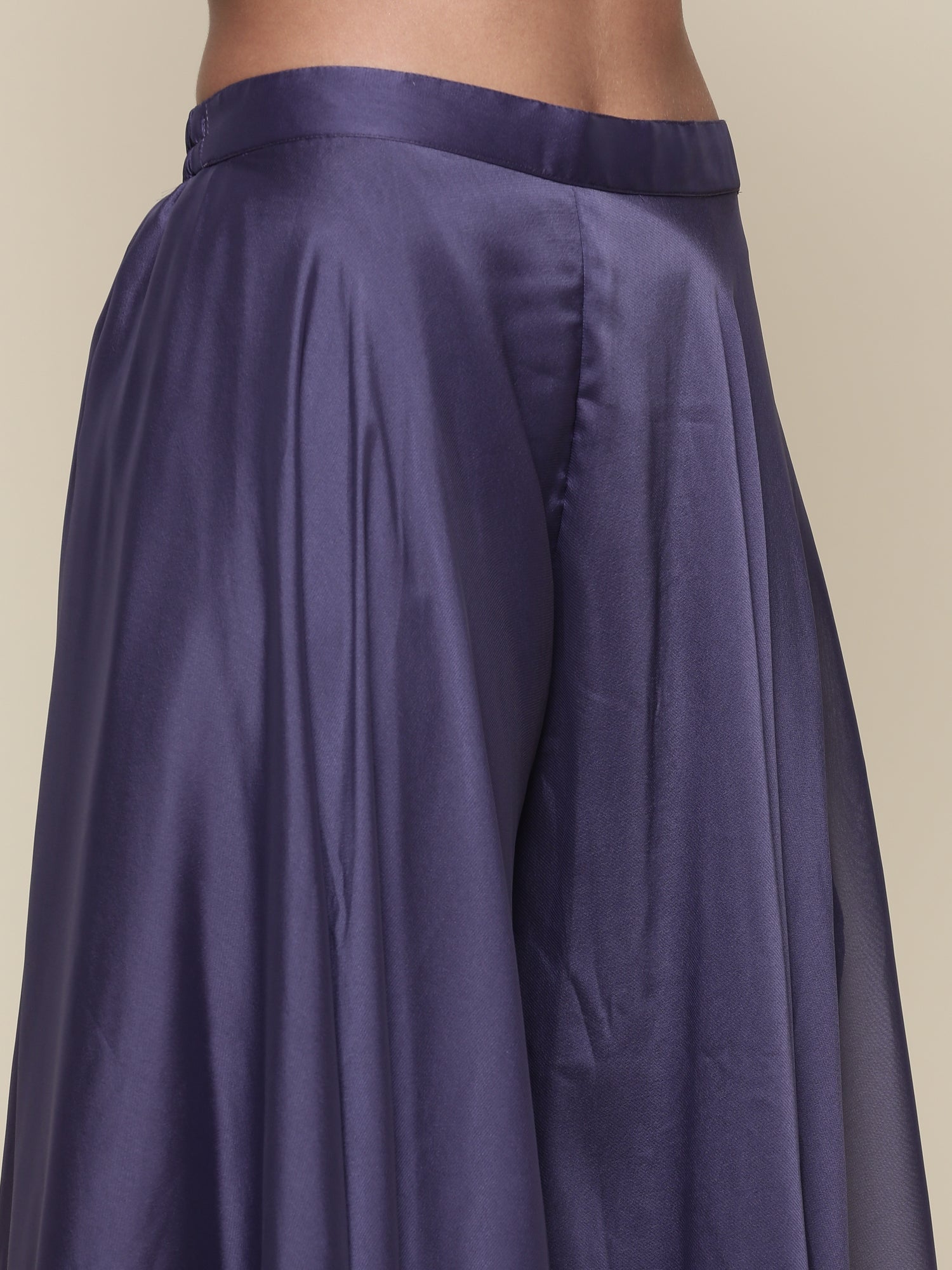 Elevate your style with this Blue Tissue Crop Top and Palazzo Three-Piece Set. Crafted from lightweight tissue fabric, it offers breathable comfort and a graceful drape. The crop top pairs seamlessly with flowing palazzo pants and a matching dupatta, creating a coordinated look perfect for festive occasions or casual outings. Enjoy effortless elegance and freedom of movement while making a bold fashion statement.