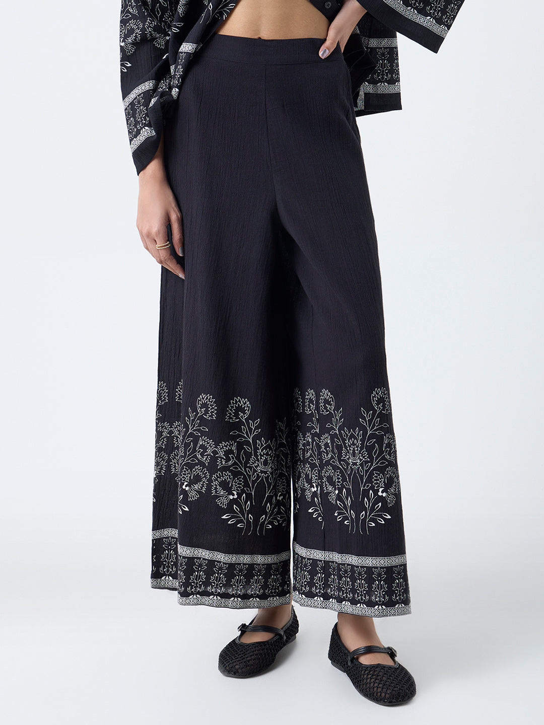 Bombay Paisley Black Floral Design Cotton Palazzos