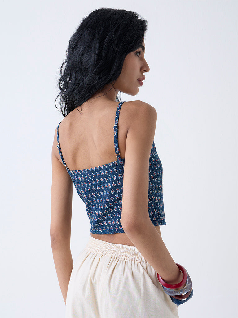 Bombay Paisley Blue Printed Cotton-Blend Top