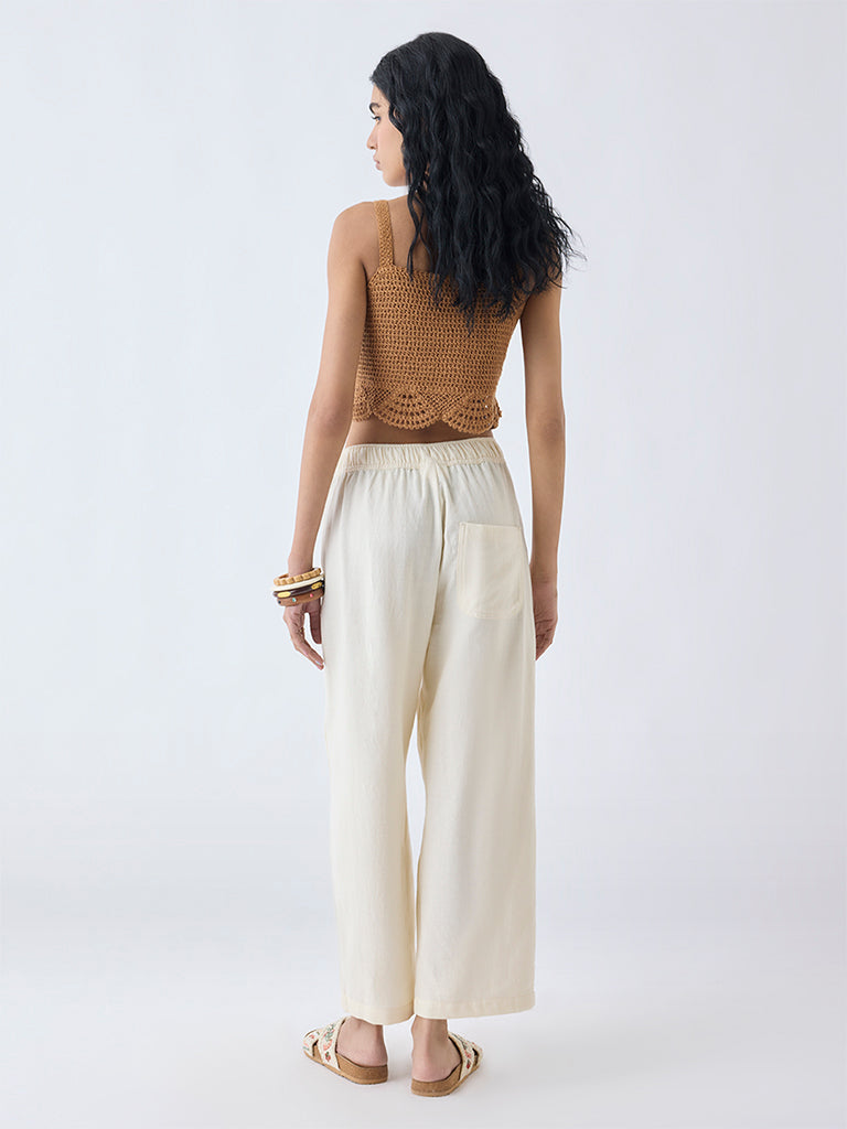 Bombay Paisley Cream Solid Cotton-Blend Pants