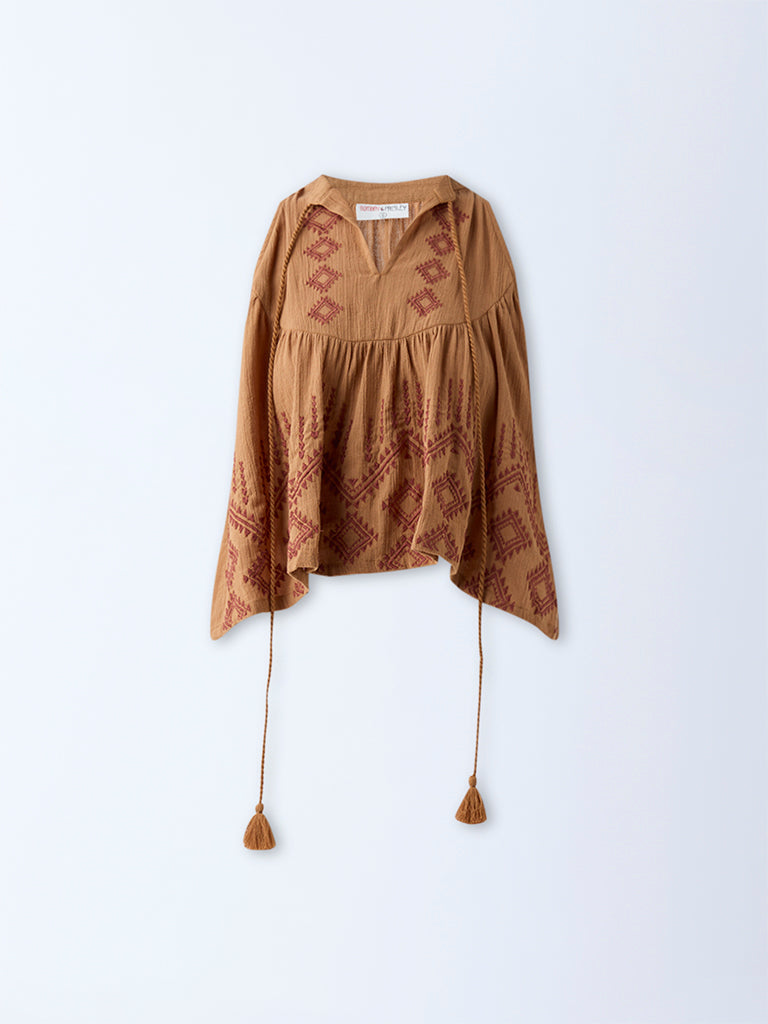 This mustard top from Bombay Paisley is a sunlit staple with embroidered work lending subtle texture. Milled from pure cotton, the sleeveless silhouette is framed by a flattering keyhole neck with adjustable drawstrings for added style.
